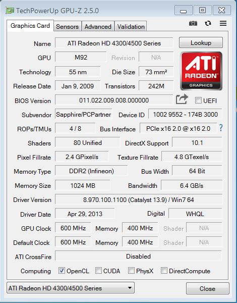 Grafikkarte ist: ATI Radeon HD 4300/4500 Series
