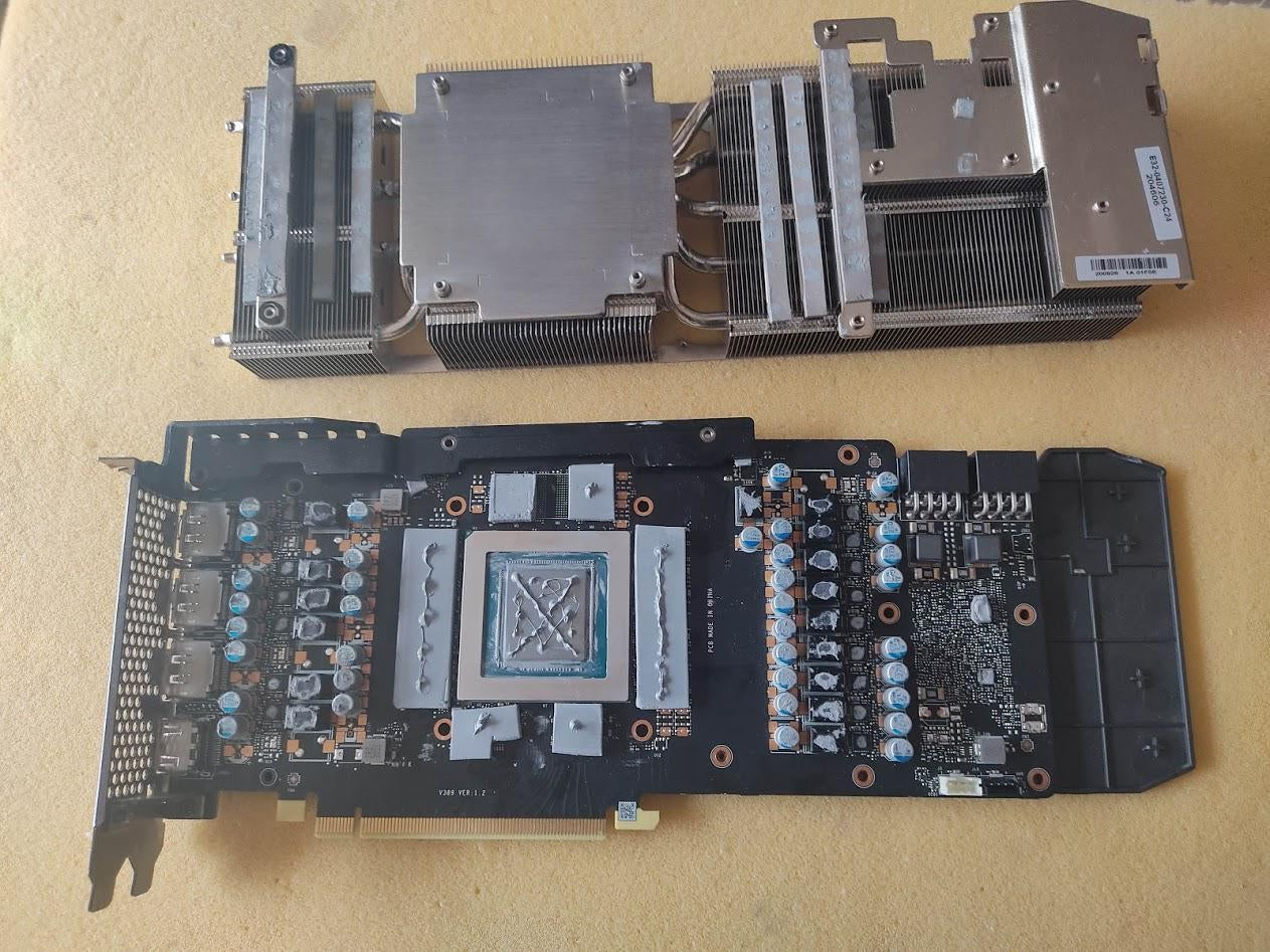 Bild der Platine einer 12GB MSI GeForce RTX 3080 VENTUS 3X PLUS OC LHR GDDR6X 3xDP 1.4a 1xHDMI 2.1