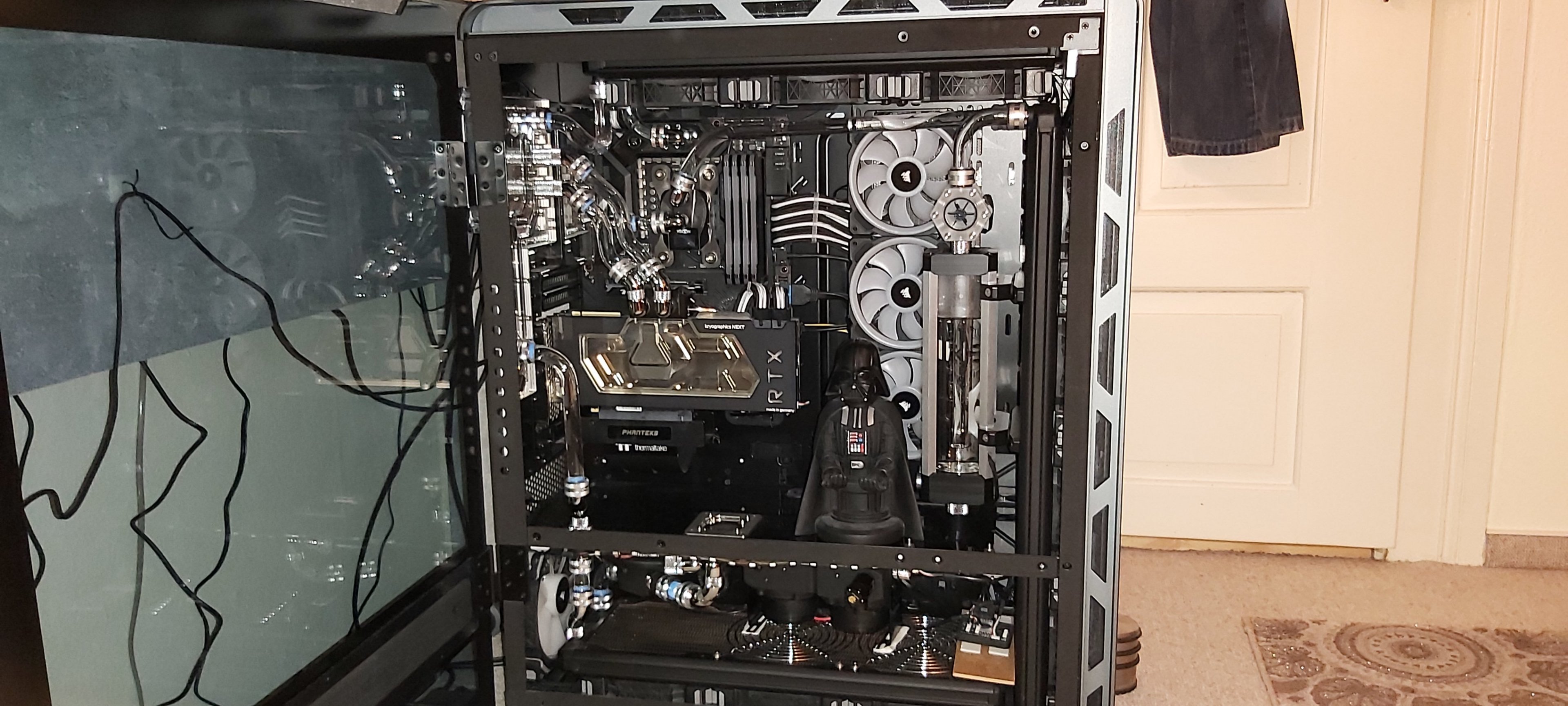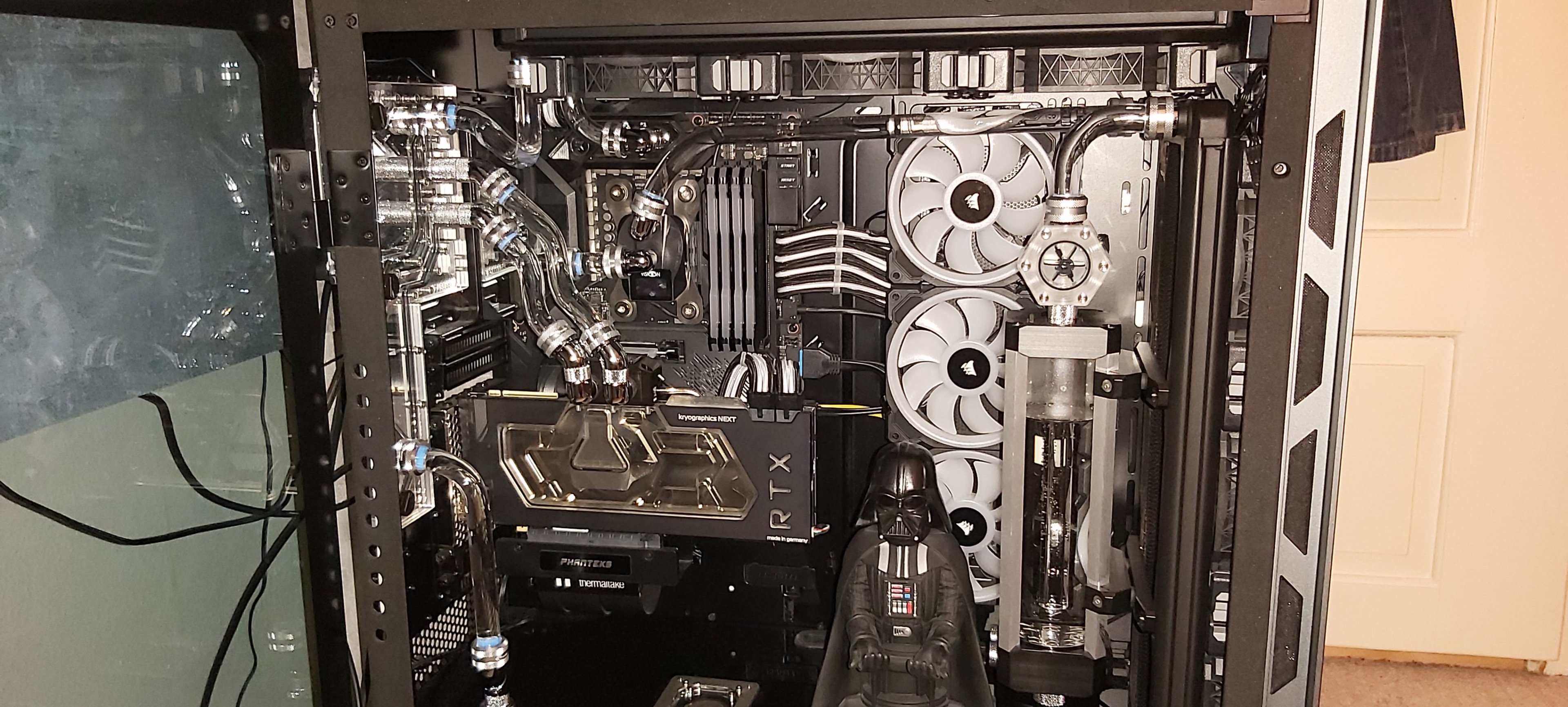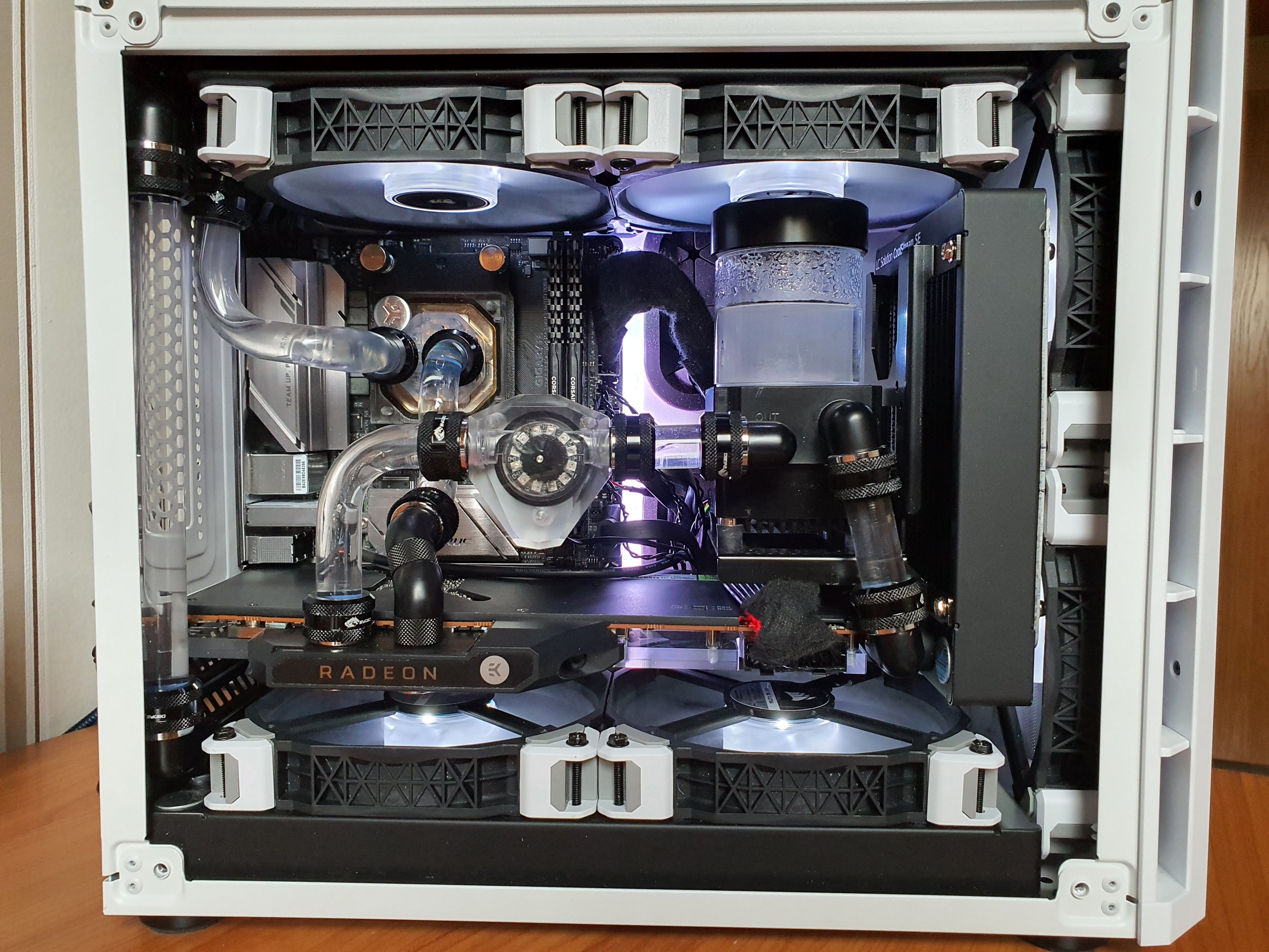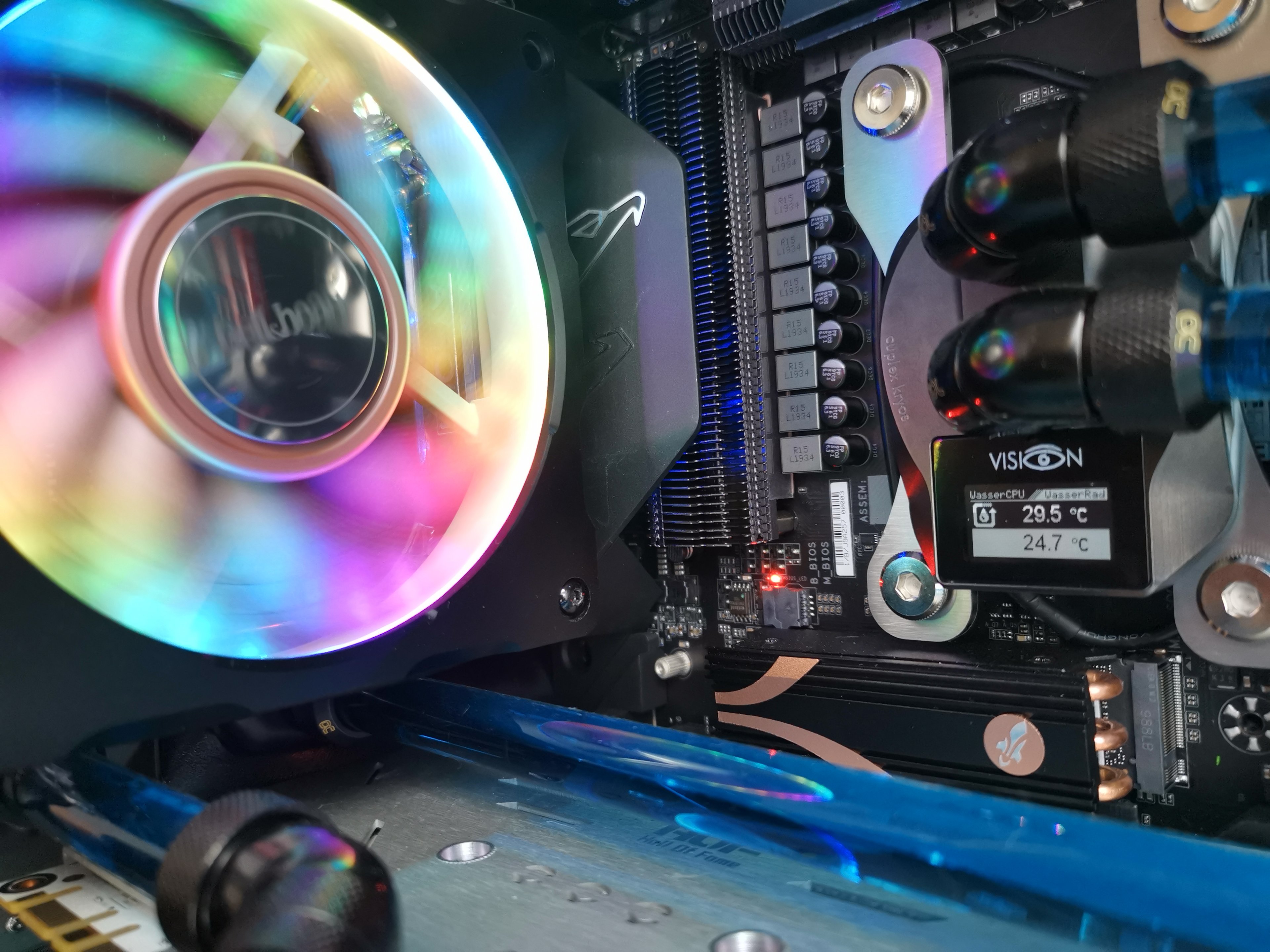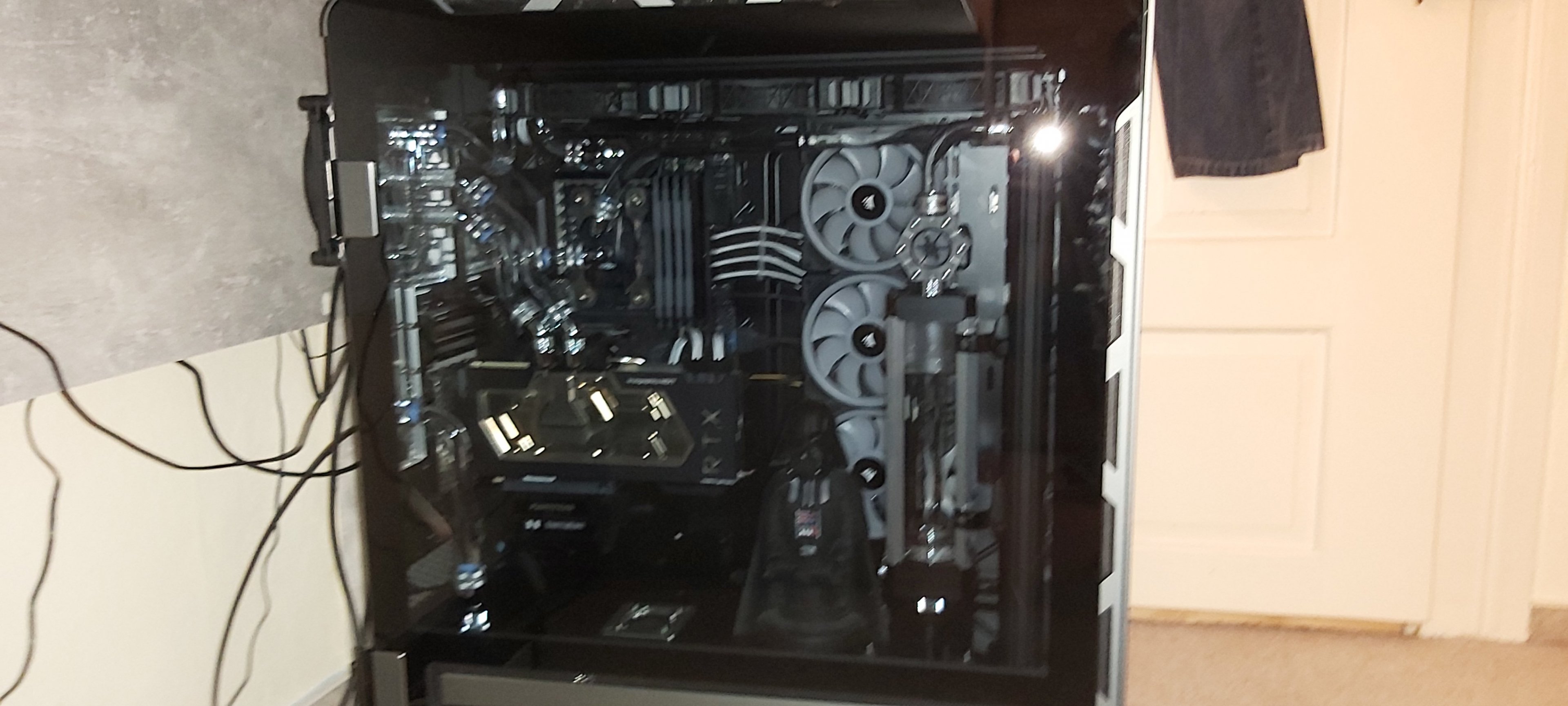 Daher frage ich hier einfach mal nach, ob jemand bei sich Zuhause einen PC mit custom Wasserkühlung hat und vielleicht ein Bild zur Verfügung stellt. Ich kann euch auch als Urheber im Impressum verlinken, falls ihr das wollt. Was ich mir etwa vorstelle, könnt ihr auf dem Bild sehen, Abweichungen sind aber natürlich auch willkommen.