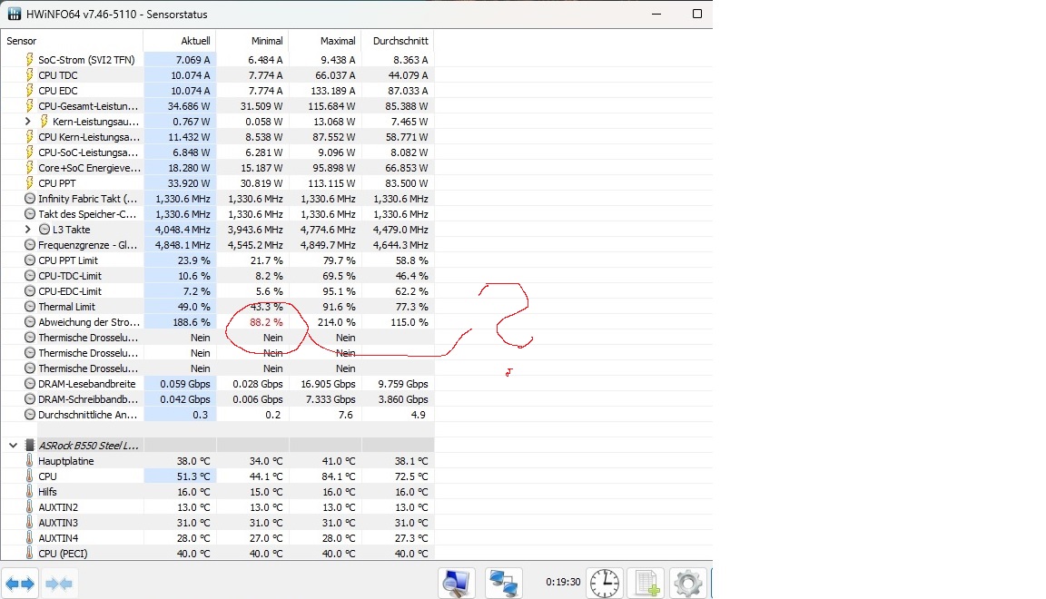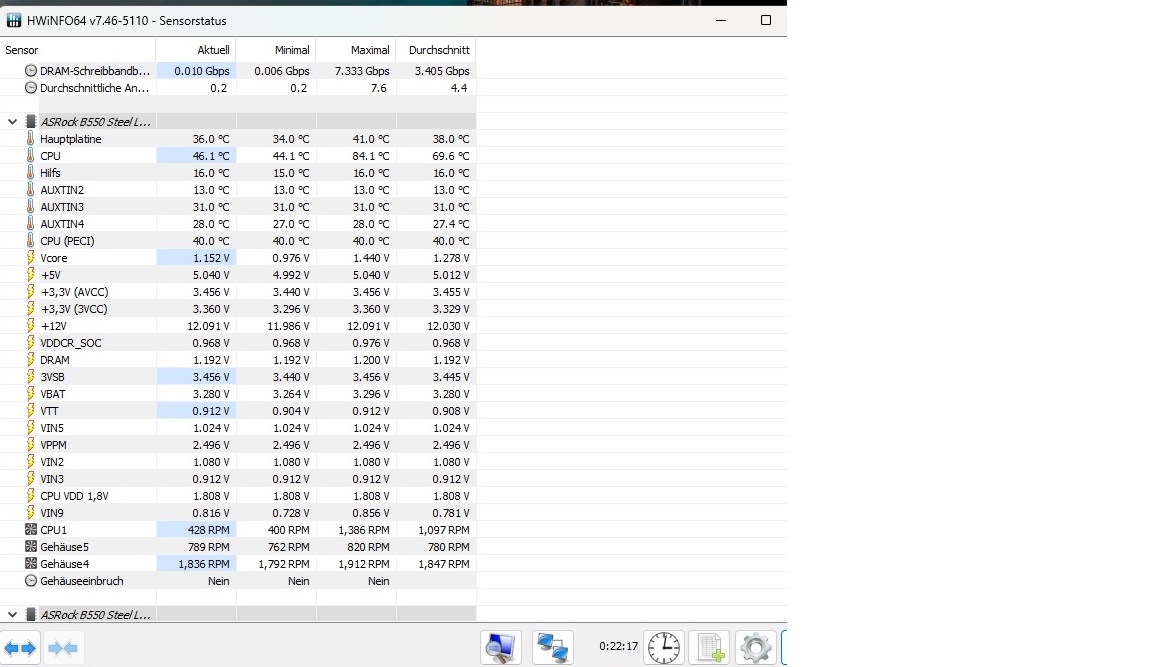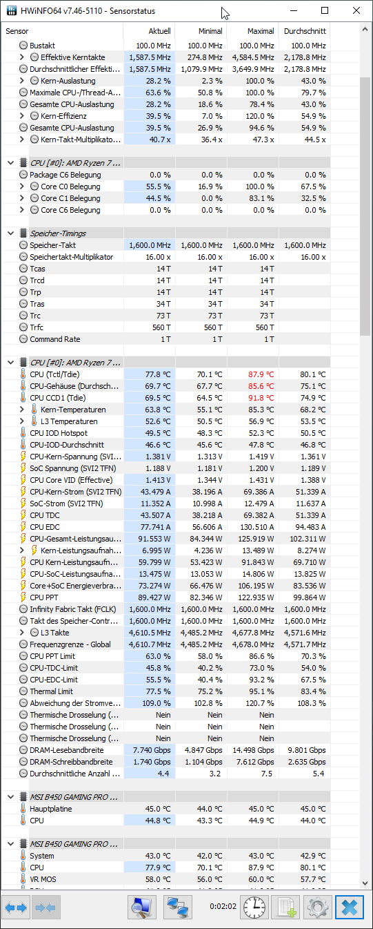 Ich habe mir noch die Mühe gemacht und alles mit hw info auslesen lassen und Screenshots von den Werten gemacht .