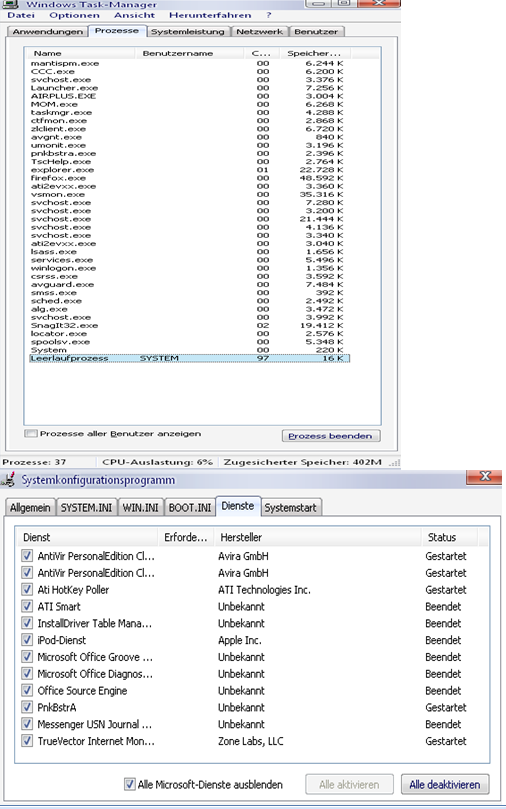 Meine Festplatte ist etwas überfüllt, aber im Taskmanager und Autostart läuft nichts Ungewöhnliches. Ich glaube die Probleme sind nach dem Download von ET QW über bittorent aufgetaucht. Hier noch mal ein paar Pics. Danke im Voraus für eure Hilfe