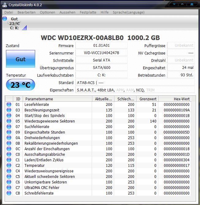 Poste doch bitte mal einen Screenshot von CrystalDiskInfo.