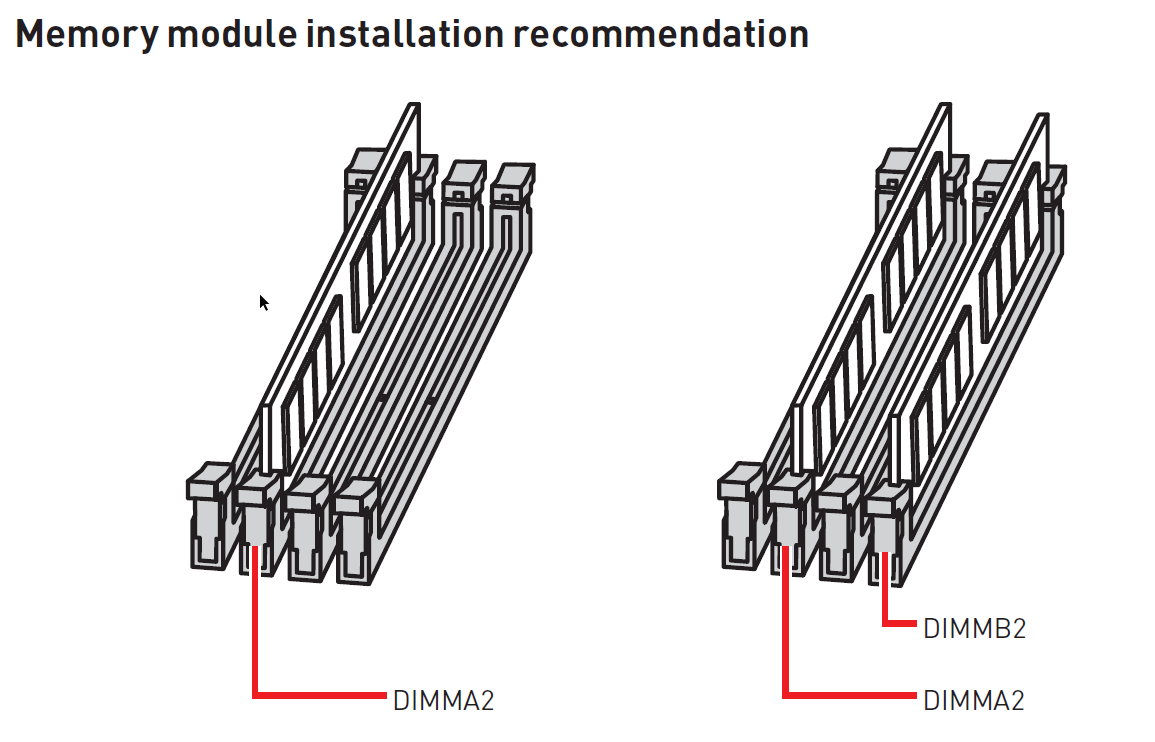 also in den richtigen Slots ist es laut Abbildung auf dem Mainboard ich hab jetzt aber einfach versucht es in die anderen Slots zu stecken funktioniert aber auch nicht.