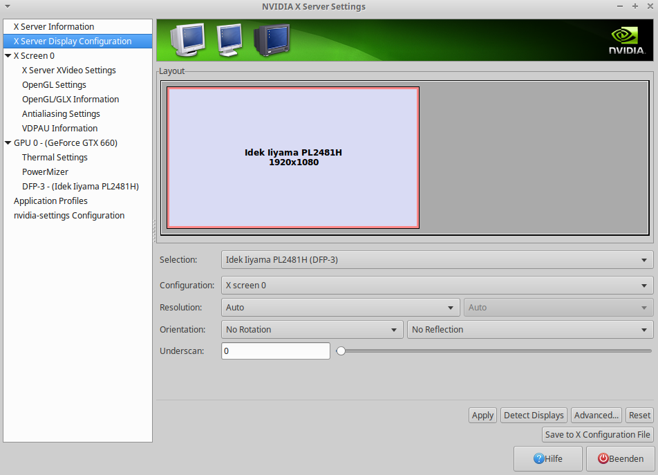 System: Intel Xeon e3 1231, Geforce 660 (Treiber 361,42 ist installiert), 8gb Ram und Monitor ist der Iiyama Pl2481H per Dvi.