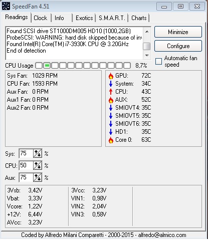 Temperaturen von GPU, CPU scheinen mir normal zu sein.