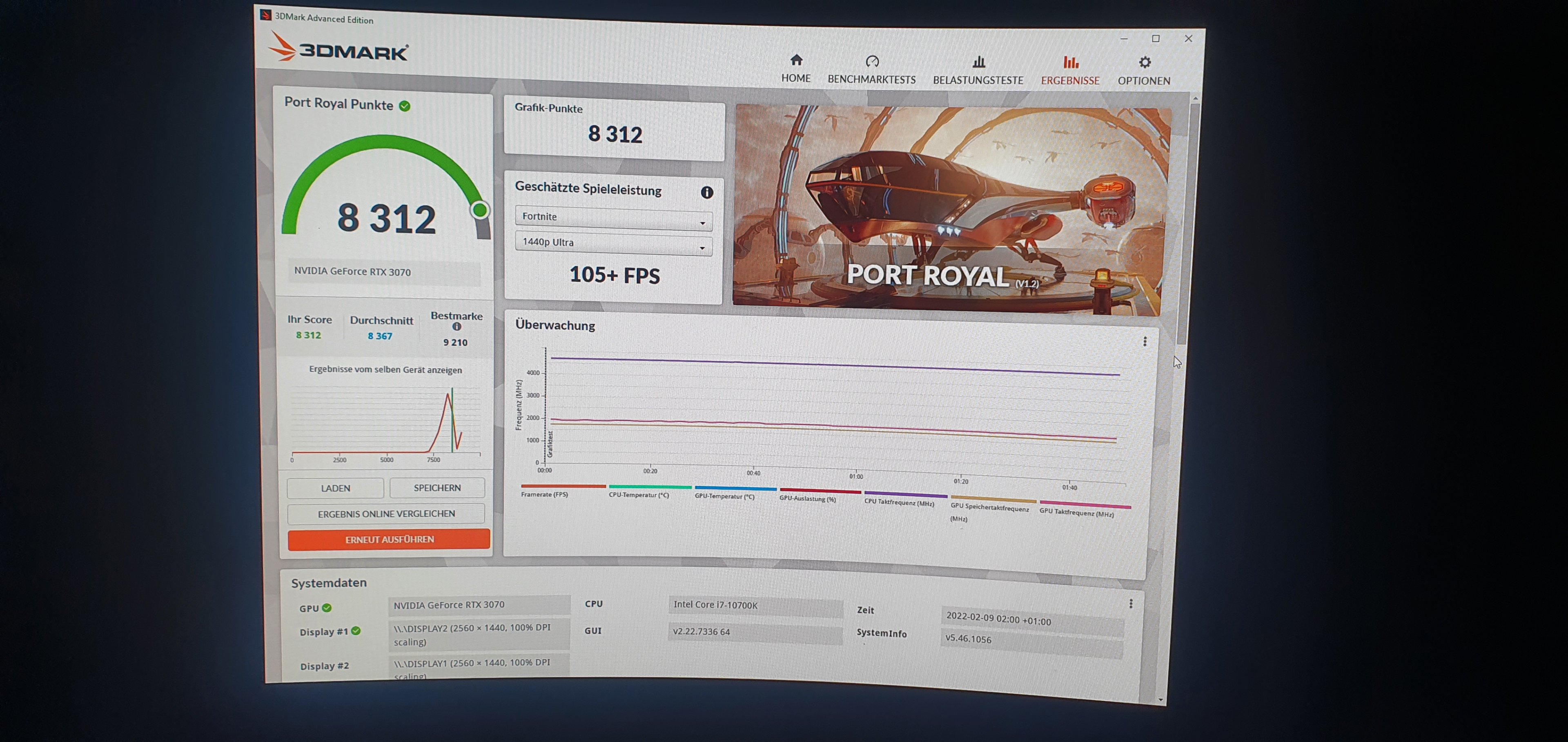 Wie v ele Punkte hast du denn im Port Royal erreicht? Mit WQHD sollte die RTX 3070 auf ca. 8.000 kommen, s. hier.