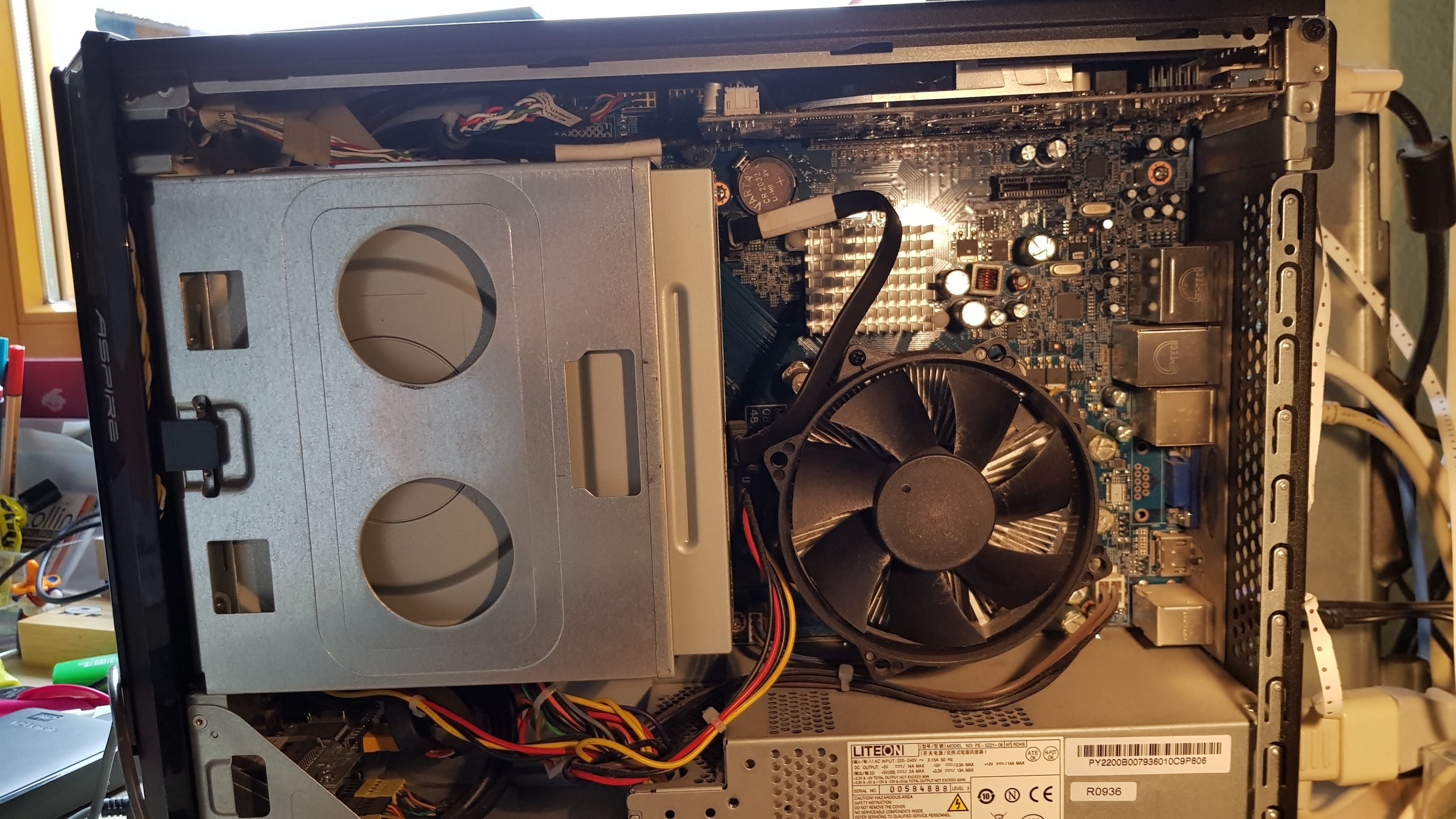 • Gehäuse: Slim Tower (wohl von Acer, 1x5,25 Zoll (DVD Multirecorder und 1x3,5 oder 2,5 Zoll Schacht (intern);
