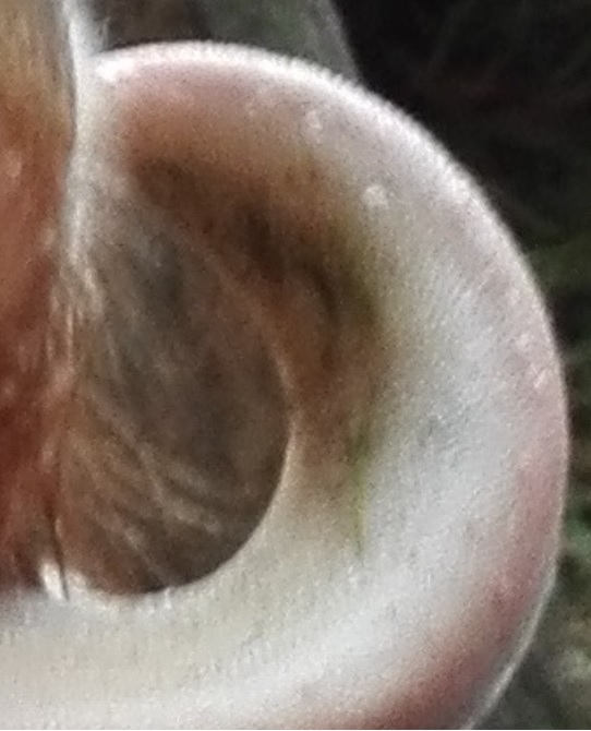 So jetz aber. Ist sehr nah dran und oben die braunen Verfärbungen, das ist nur Dreck, gehört nicht dazu.