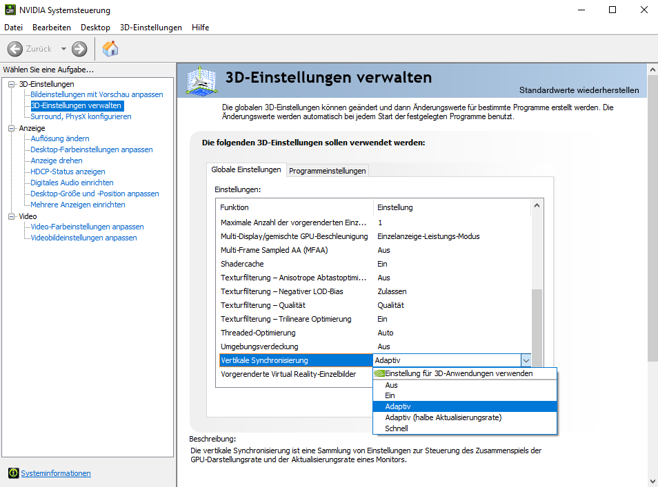 Ich habe ohne vsync tearing im Bild, also (Bilderrisse) die ich weg haben möchte. Vsync lässt die risse verschwinden aber ich habe einen input lag was bei singelplayer spiele überhaupt nicht schlimm ist aber wenn man online spielt ist das unvorteilhaft..