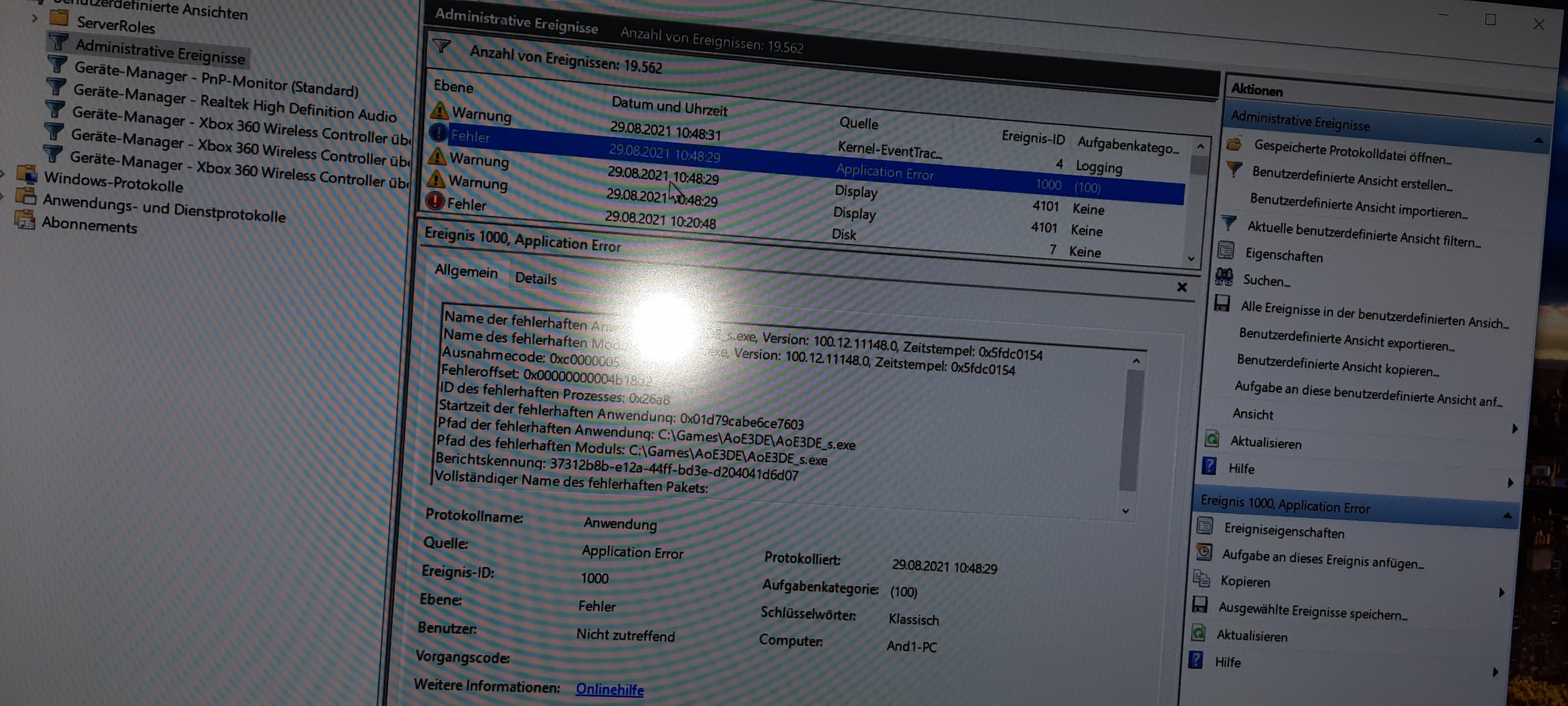 Am nächsten morgen, ich starte den Pc er funktioniert einwandfrei, ich deinstalliere die treiber etc. bringe alles auf den neuesten Stand. Lade mir etwas über Chrome runter Pc bleibt hängen (mit Bild) kann nur mehr abgewürgt werden. Nach einigen Starts funktioniert er wieder, ich spiele 2 min AoE3 und dasselbe wieder (Lüfter hochturen Pc endlos im schwarzen modus).