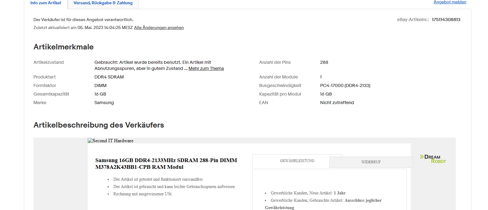 Ich wollte diese bestehende erweitern und habe einen einzelnen DDR4 Riegel mit 2133 MHZ mit 16 GB dazu geholt. Ich hatte gelesen, dass man die auch so kombinieren könnte.