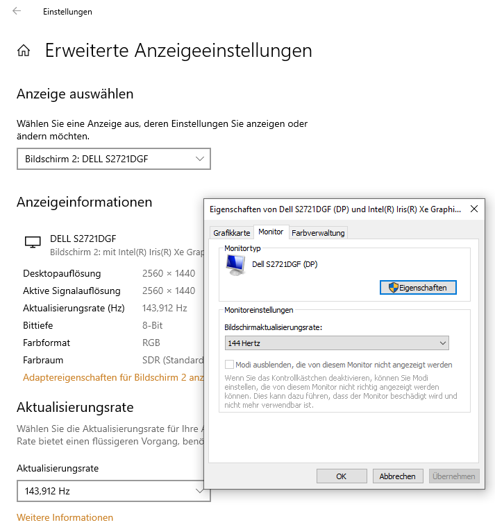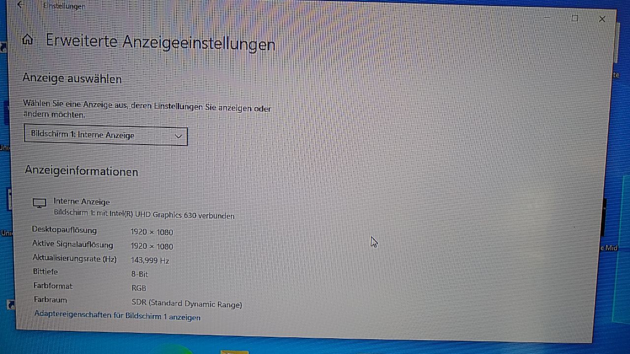nach einem Update von Windows 10 habe ich nun einen dunklen Bildschirm. HDMI Ausgang funktioniert. Der Laptopmonitor (Lenovo Legion y540) ging auf ein mal aus (zusammen mit diesem Windowston, wenn die Auflösung geändert wird). Zuvor hatte ich nach einem Neustart auch eine verkleinerte Auflösung, die ich nicht gewählt habe. Das fand ich schon etwas merkwürdig