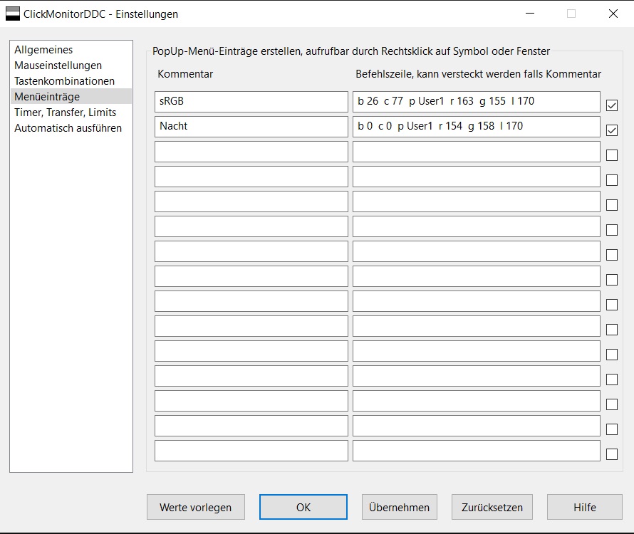 Ich habe mir mit dem tool 2 Profile erstellt, einmal Tags und einmal Nachts, wo ich Helligkeit und Kontrast auf 0 habe.