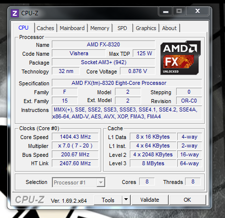 CPU : AMD FX (tm) 8320 Eight-Core Processor