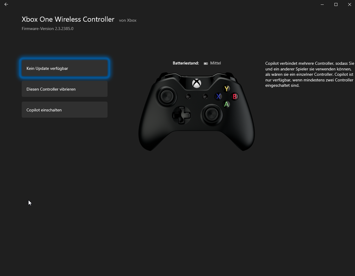Hab mir wie du gesagt hast über den Windows Store die App "Xbox Zubehör" runtergeladen und versucht die Firmware des Controllers zu aktualisieren.