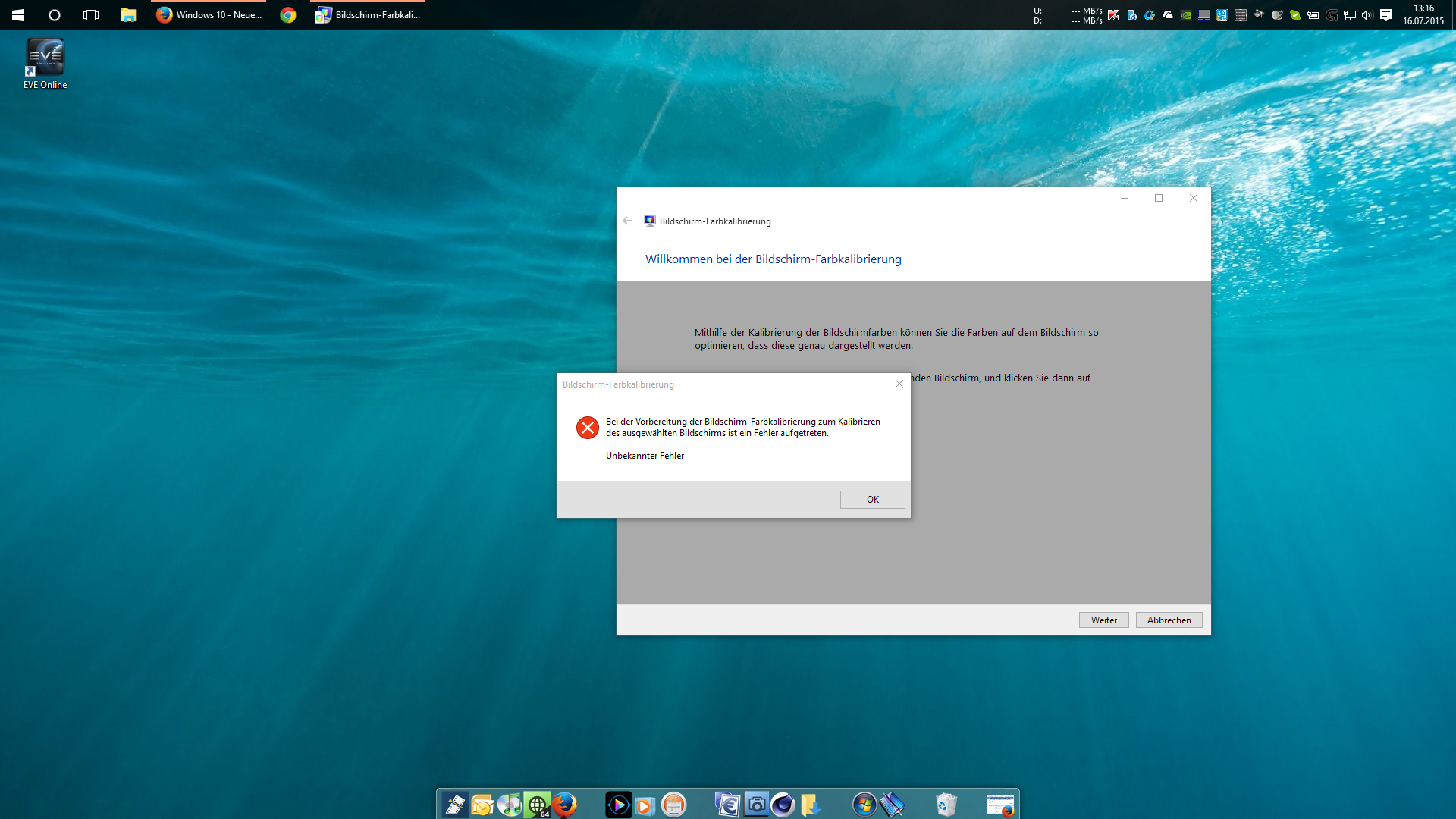 Zum einen die Farbkalibrierung die mit einem Fehler endet und sich nicht starten lässt. (Siehe Screenshot)