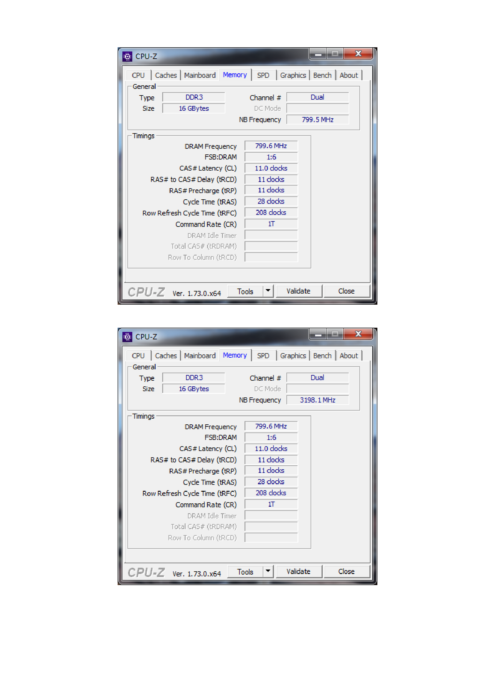 Nach Neustart in CPU-Z/Memory schauen, ob das auch so übernommen wurde(screenshots).