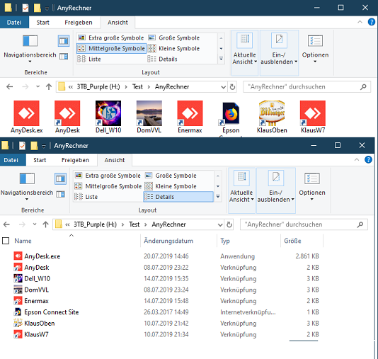 Du bist ja auch im Bilderordner und der TE im Dokumente Ordner, was ich meinte siehst Du ja auf meinem Link auch, einmal die Symbolansicht und einmal Details. Das ist auch ein normales W10 Pro.