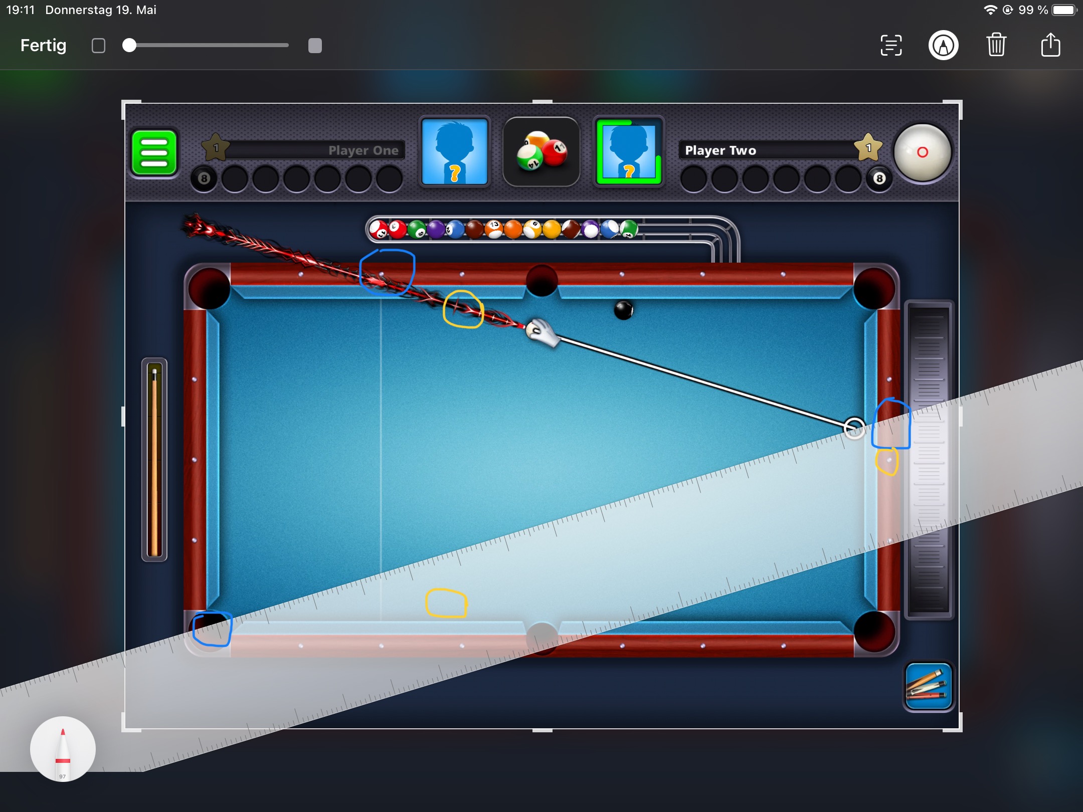 Würde man auf den mittleren Diamanten zielen (gelb markiert),