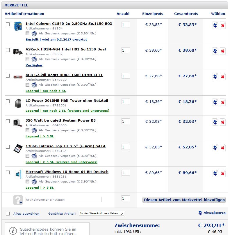 Im internet kann ich in dieser Preiskategorie fertige PC zusammenstellungen finden. Mich würde interessieren ob es trotzdem sinn machen kann da etwas selber zusammenzustellen (+ zusammenbauen zu lassen) oder kann man in so einer niedrigen Preiskategorie die fertigen Zusammenstellungen nicht überbieten?