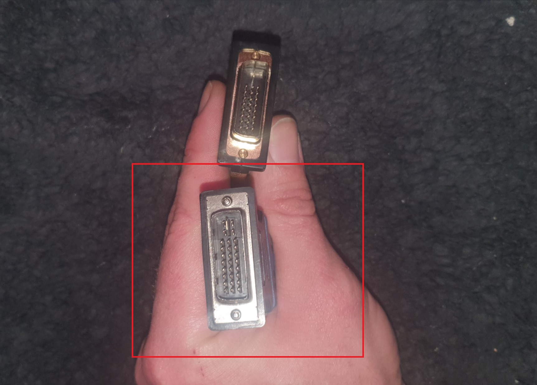 Na ja, wenn er versucht hat mit Gewalt den DVI-I Adpater in eine DVI-D Buche zu stecken, kann es sein das er sich die Pinne verbogen hat im Adapter.