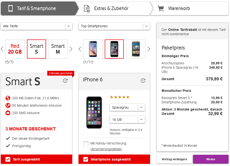 Und zwar schaue ich mir gerade einige Pakete auf der Vodafone-Seite an, folgendes habe ich ausgewählt:
