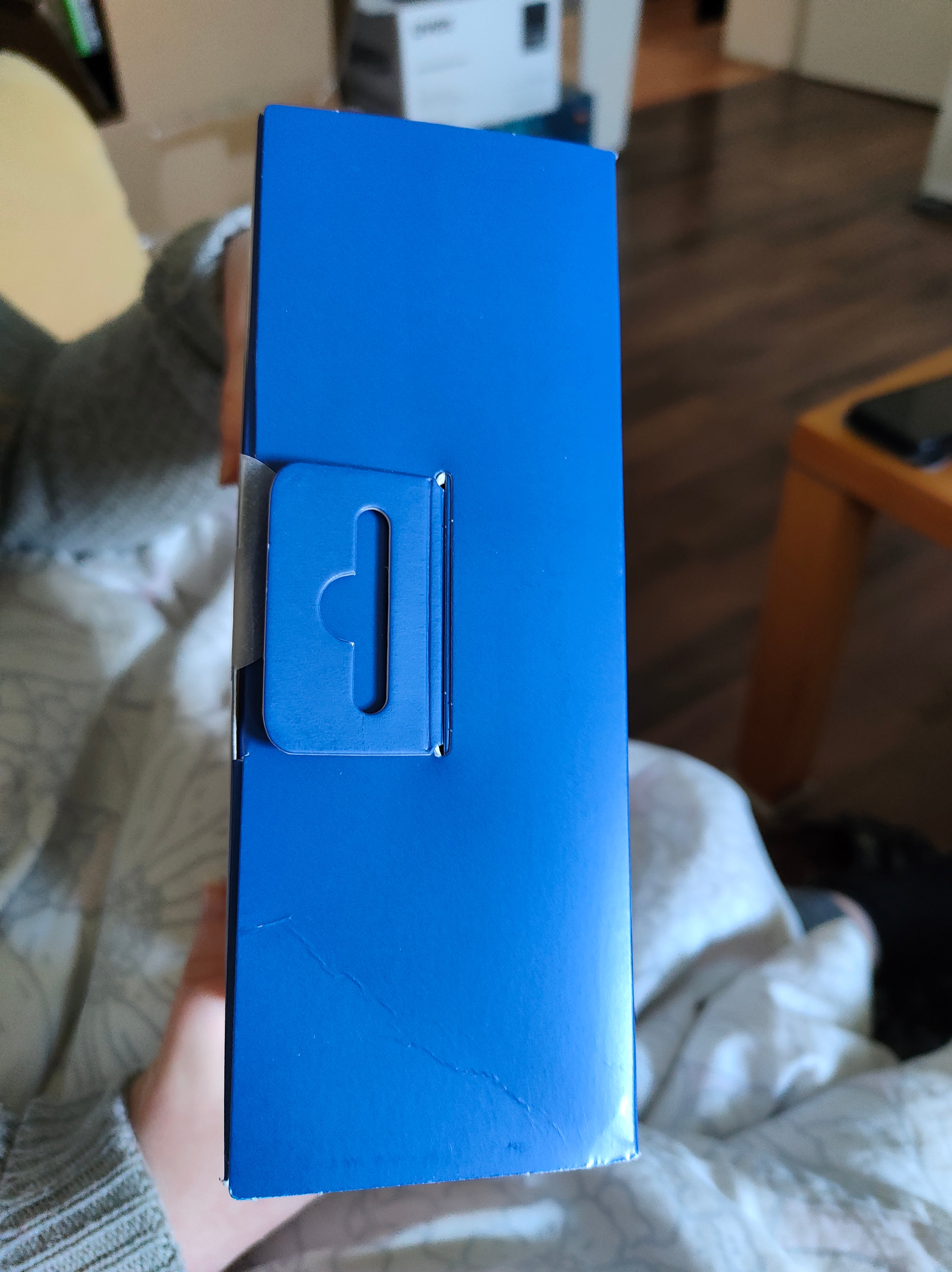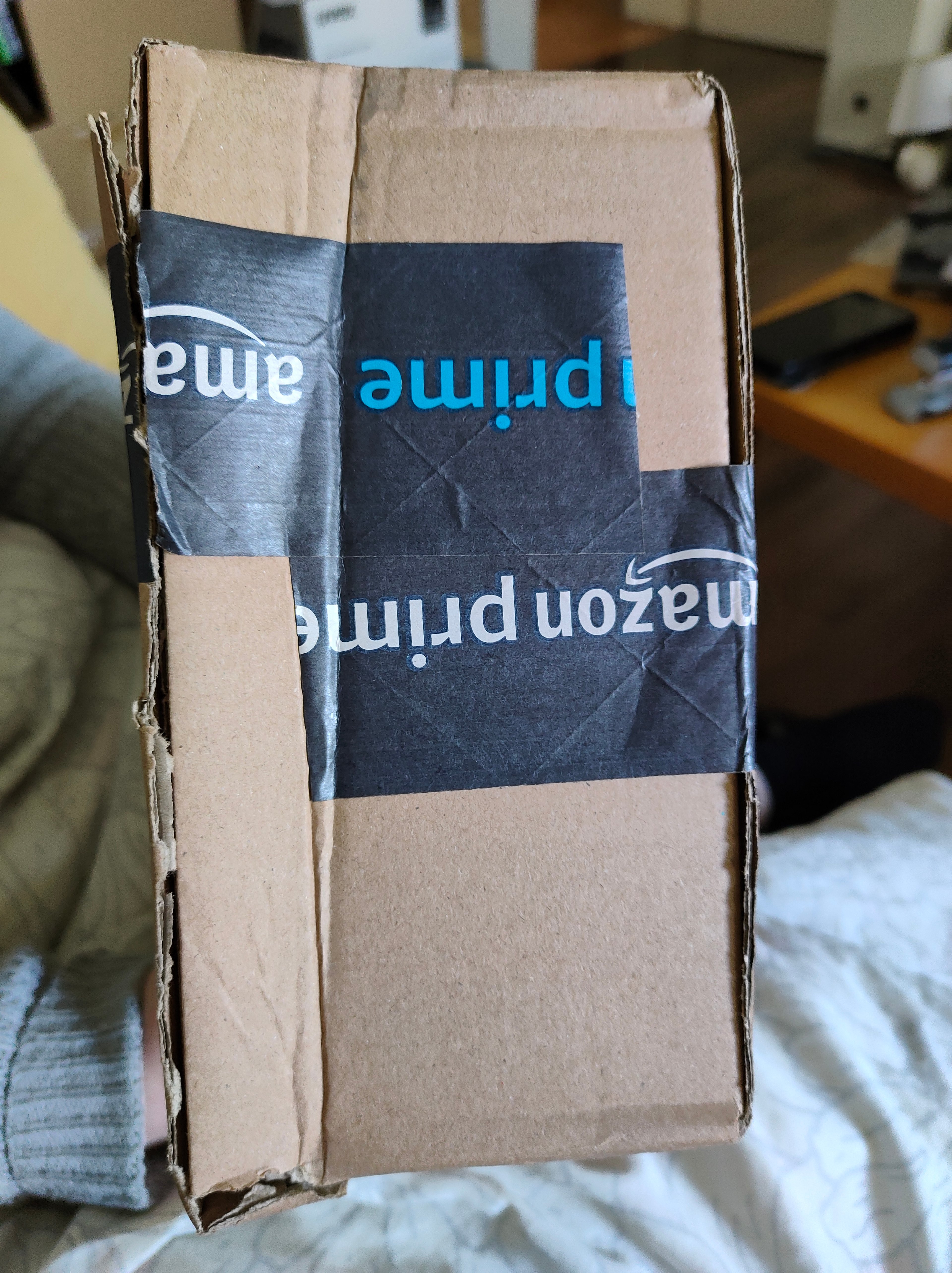 Ich habe es bei Amazon reklamiert und sofort nächsten Tag, also heute, Ersatz bekommen. Diesmal sah der Karton gut aus, aber die OVP vom Ersatz sieht noch schlimmer aus: