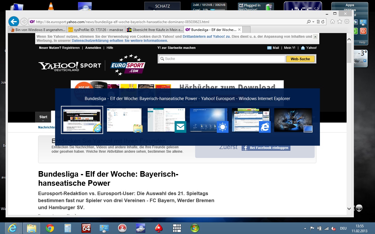 Was ich aber echt vermisse - und das war im Prinzip auch bei Win 7 schon so - ist eine Komplettübersicht ALLER laufenden Programme. Windows 8 kann zwar am Bildschirmrand laufende Apps zeigen (ein Schritt in die richtige Richtung), aber eben nicht die "classic" Windowsprogramme. Ich vermisse eine Funktion wie bei MacOSX oder auch bei Ubuntu (Unity), wo per Tastendruck alle laufenden Fenster verkleinert nebeneinander dargestellt werden.