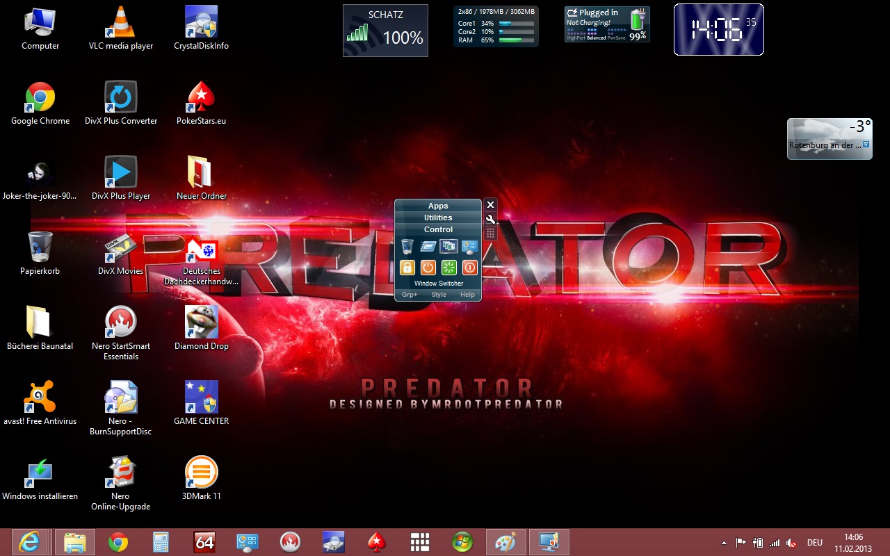 ... und es ist eigentlich nicht der Start-Button. Den brauch ich eigentlich nur, wenn ich die Systemsteuerung aufrufen will oder ein selten gebrauchtes Programm starten will. Dann schwenkt die Maus instinktiv nach links unten am Bildschirm - und dort ist nix, huch. Immer noch gewöhnungsbedürftig, vielleicht rüste ich dafür das Startmenü per Classic Shell nach.