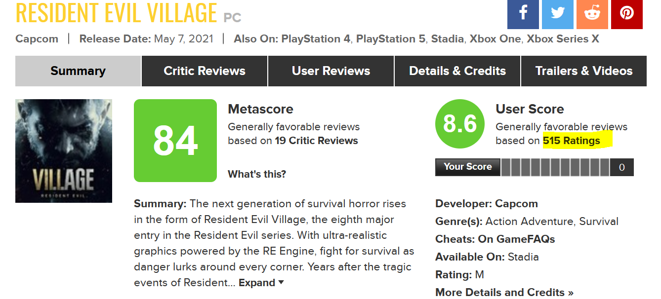 RE Village wäre schon eher ein Kandidat, wo ich die Wertungen eher Kontrovers sehen würde.