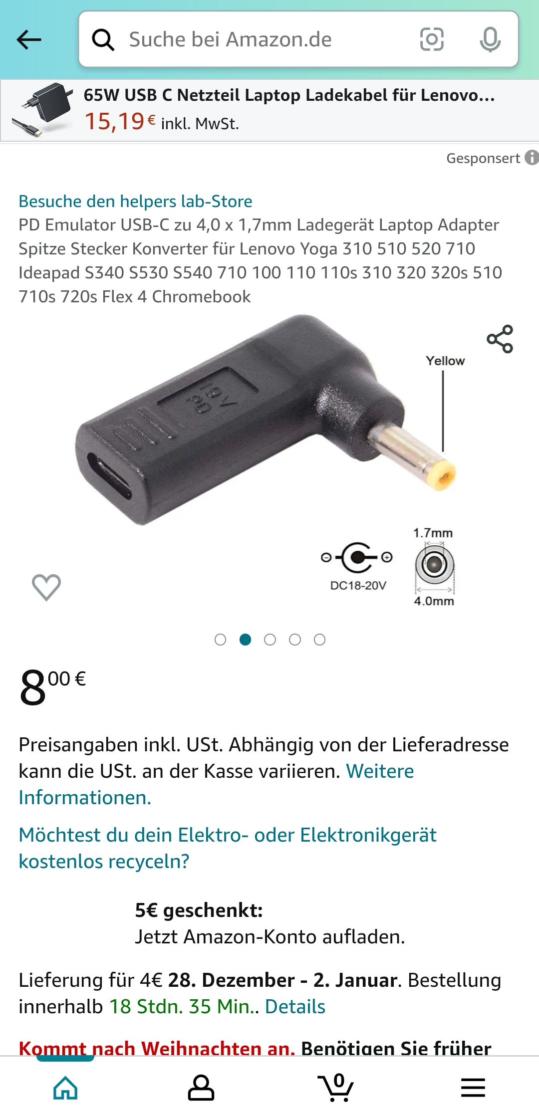 EDIT: Es kann gut möglich sein, das es der Ladegerät ist, daher hole ich mir ein Adapter fürs Laden. Siehe Datei im Anhang 👇