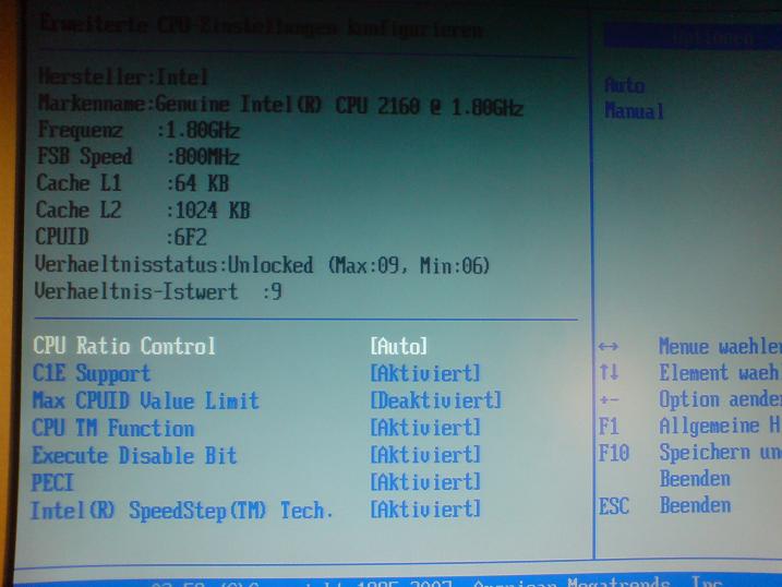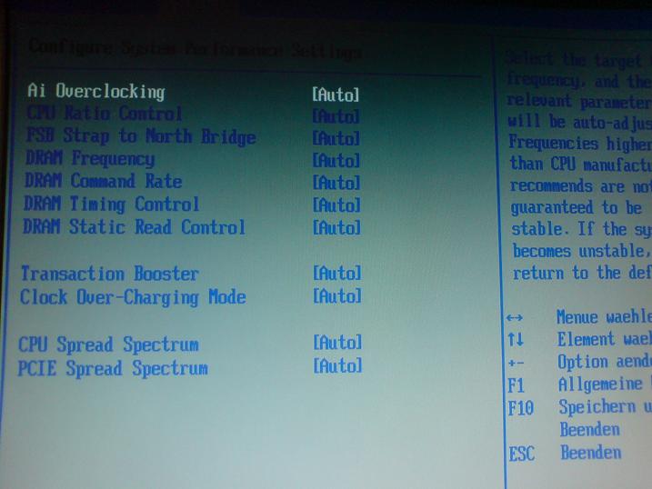 Jetzt bin ich im BIOS vom Asus P5K-E aber ich komm nicht zu den Einstellung des FSB etc. Woran kann das liegen? Ich kann einfach mit den Pfeiltasten nicht zu den grauen Feldern navigieren..