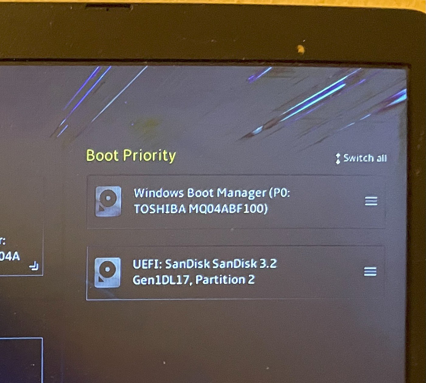mein problem ist, dass ich die bootreihenfolge nicht ändern kann. mir wird zwar der usb stick angezeigt, ändern kann ich aber nichts.