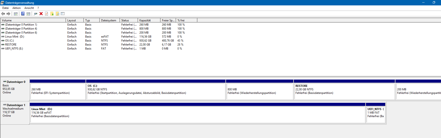 Ponderosa schrieb:Könnte sein, zeig mal von deinem PC aus, einen Screenshot der Datenträgerverwaltung mit dem Stick.