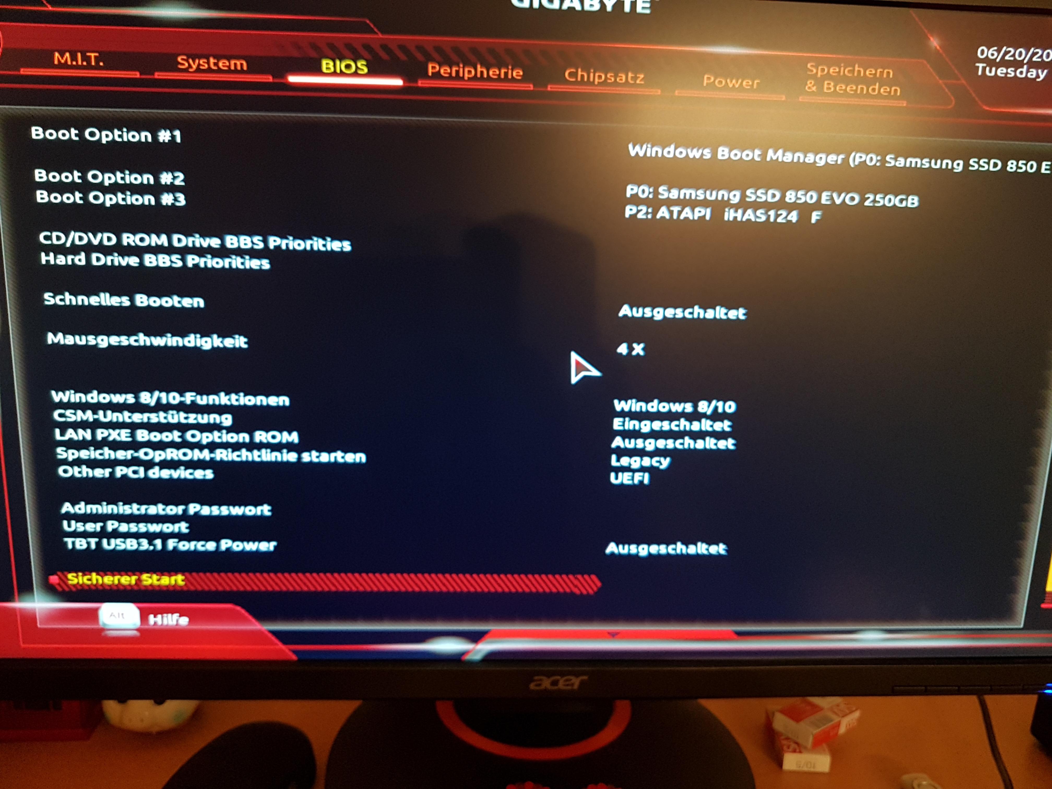 Da ich mich lange Zeit ( ca. 6 Jahre ) nicht mehr mit dem Bios beschäftigt habe, möchte ich bitte nur Tipps haben was ich Bios alles einstellen kann,sollte oder wie auch immer