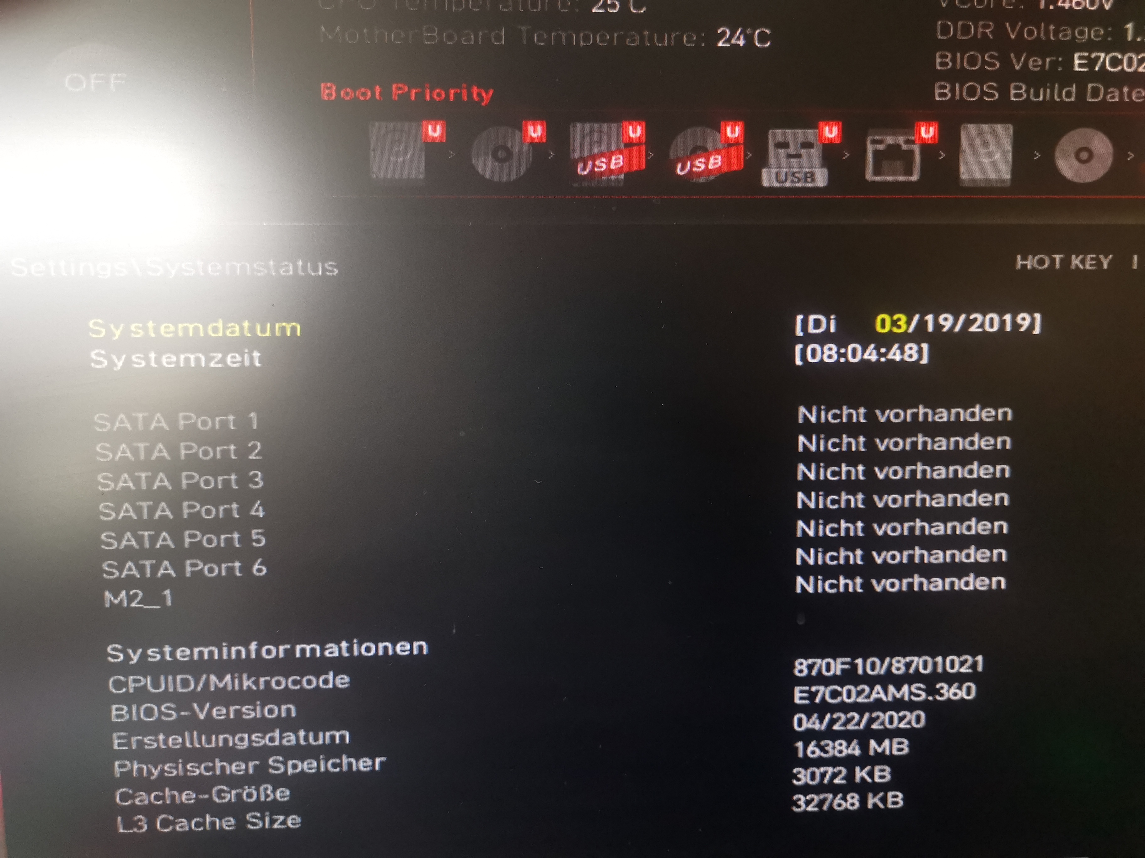 Hab schon so viel ausprobiert, ausgesteckt wieder eingesteckt, diverse Bios einstellung geändert UEFI zum Beispiel