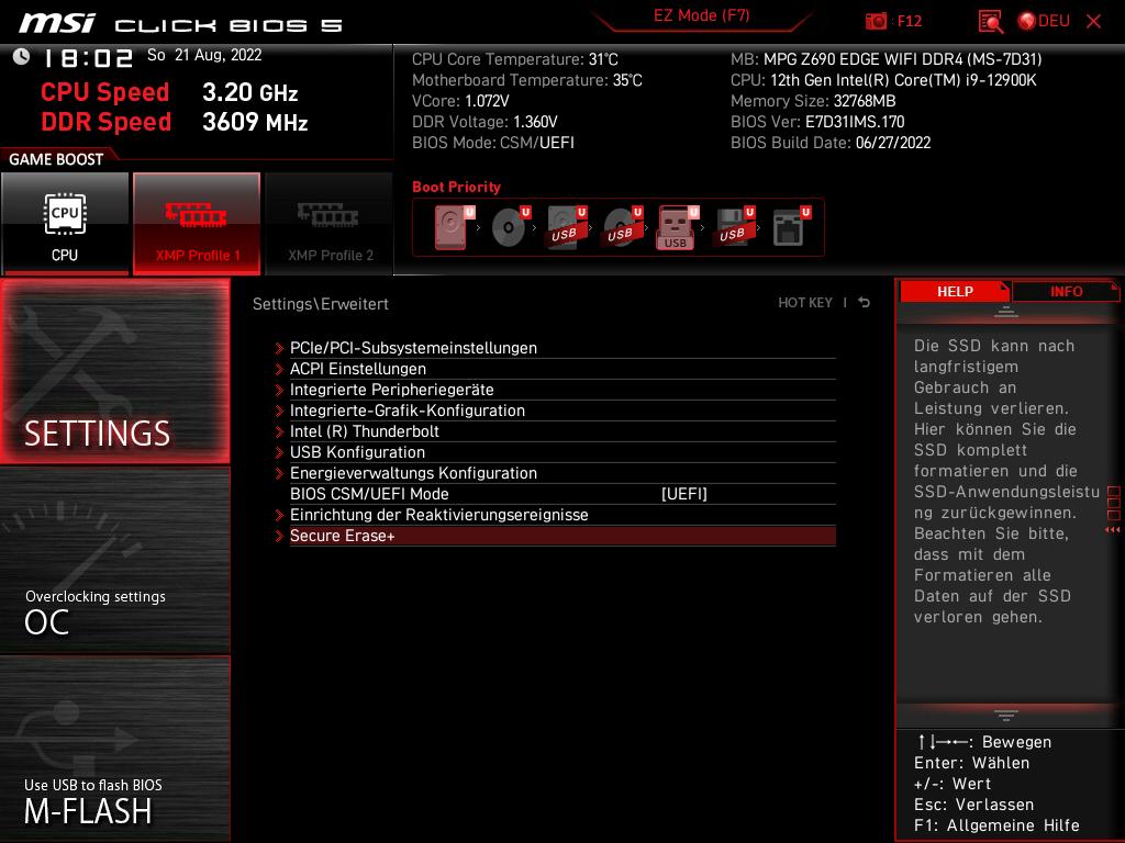 Daufhin Comuputer neu gestartet (vorher den USB Stick angesteckt, ich hab schon alle drei USB Anschlüße durchprobiert) mittels ESC Taste die Boot Optionen aufgerufen: nun kommt nur "Hard disk" und "EFI" Datei, aber leider keine USB Auswahlmöglichkeit.