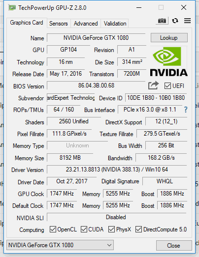 Ich habe mir heute von der Techpowerup Seite ein bios für meine Gainward GTX 1080 GLH runtergeladen und auch erfolgreich mit nvflash auf meine beiden Grafikkarten geflashed, nur habe ich nun das Problem das mein Grafikspeichertyp nicht mehr erkannt wird und mein Grafikspeicher nicht mehr hochtaktet und deshalb natürlich meine FPS ins bodenlose gefallen sind. Ich habe dummerweise vergessen vor dem bios flashen mit gpu-z eine Sicherung meines bios zu erstellen. Ich habe bereits versucht ein älteres bios von techpowerup zu flashen und anschließend das offizielle bios von Gainward zu überspielen, das hat in der Ausführung auch funktioniert ohne probleme, nur bleibt mein Grafikspeicher nicht erkannt und er taktet nicht mehr hoch.