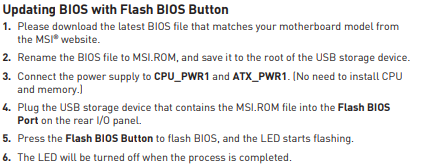 ...Versuche das BIOS schon länger zu flashen, korrekte Treiber auf FAT32 Stick, BIOS Flash LED blinkt einfach durchgehend..