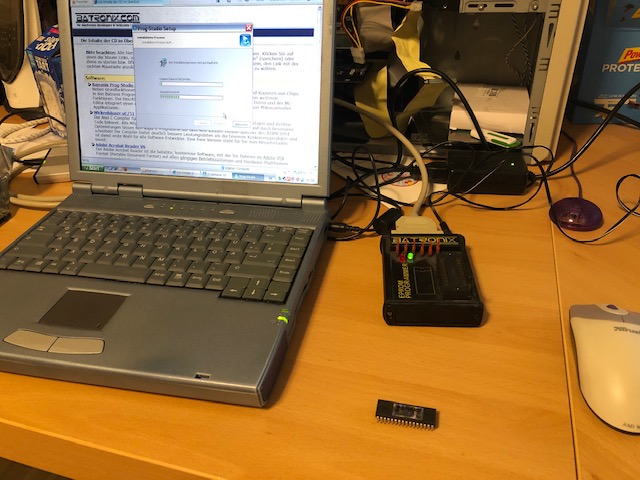 Als letzte Lösung ist mir nun eingefallen den Bios Chip zu flashen, ich hab den IC rausgezogen und meinen EEprom Brenner angeworfen.