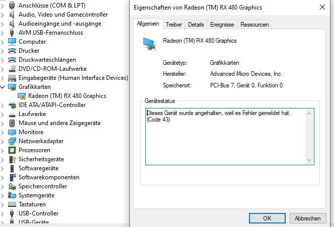 Als ich die Karte wieder hatte wollte ich sie erneut selbst testen. Jetzt bekomm ich sie nicht mal mehr installiert. Ich sag nur Code43. Siehe Bilder.