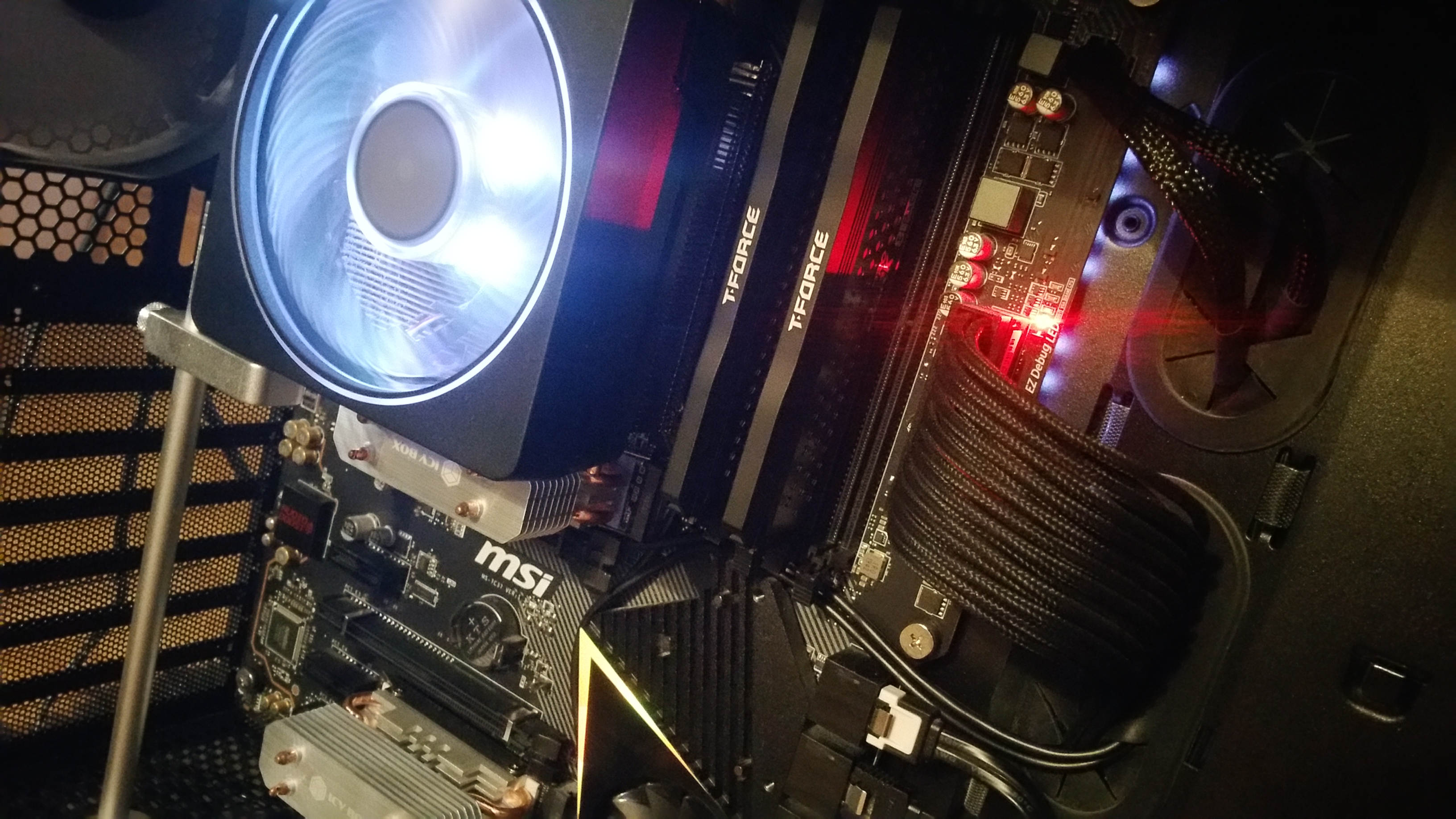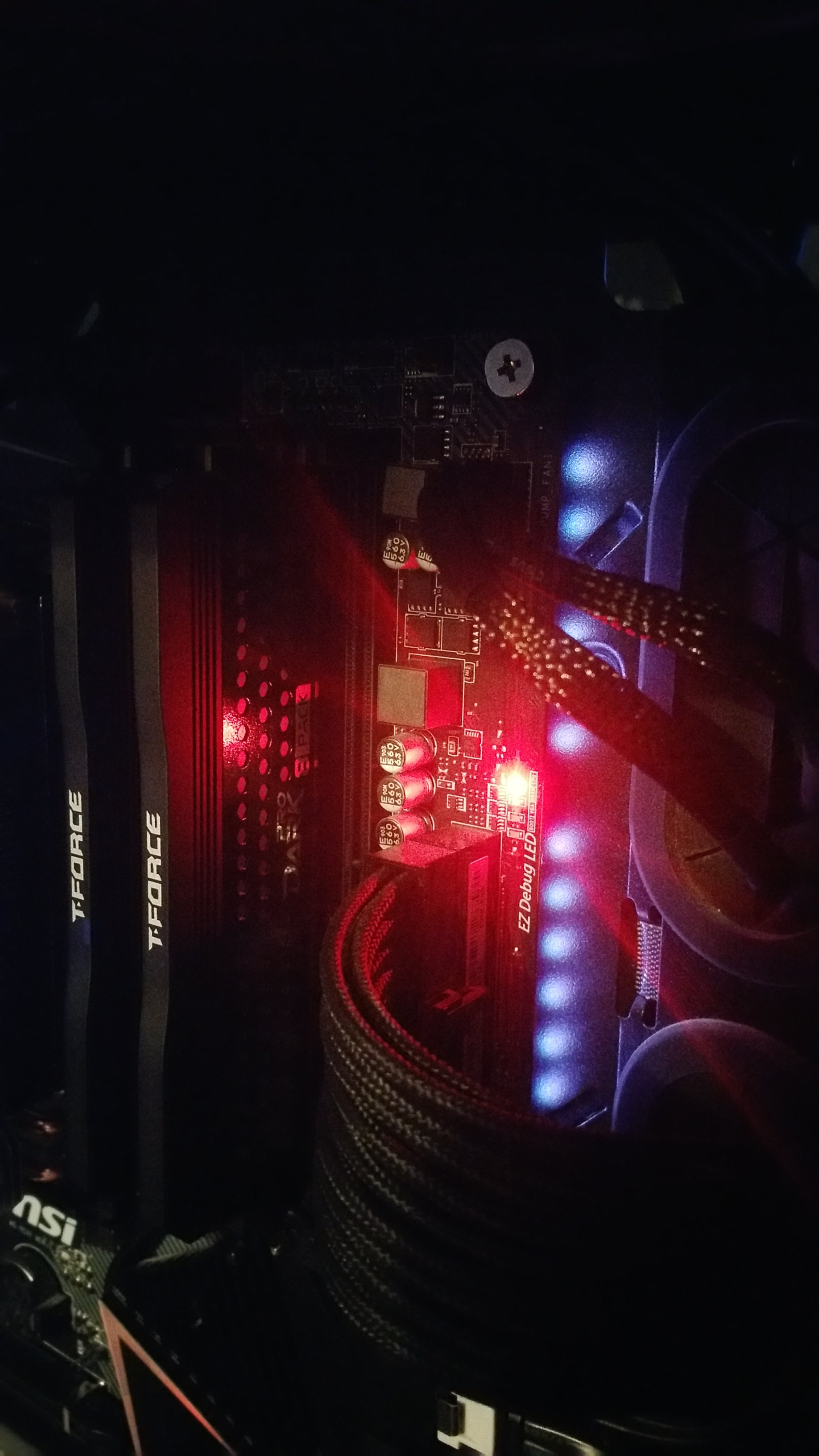 Nach einer Stunde habe ich ihn probiert manuell neu starten, seitdem bootet er nicht mehr, es gibt kein Bildsignal ich komme nicht mehr ins BIOS, und die rote CPU Debug LED leuchtet.