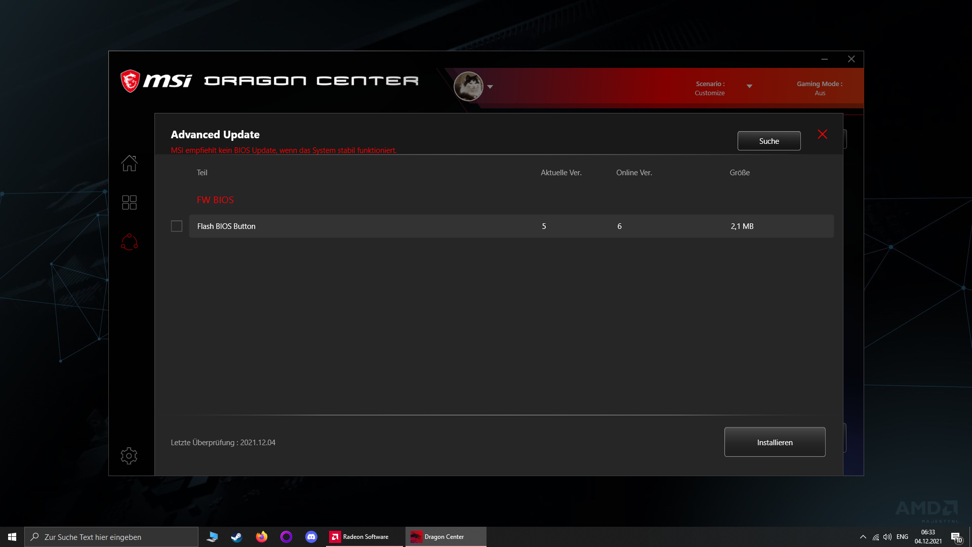 Hm beim ersten BIOS Update hat es vorzüglich mit dem MSI Dragon Center im laufenden Windows Betrieb funktioniert.
