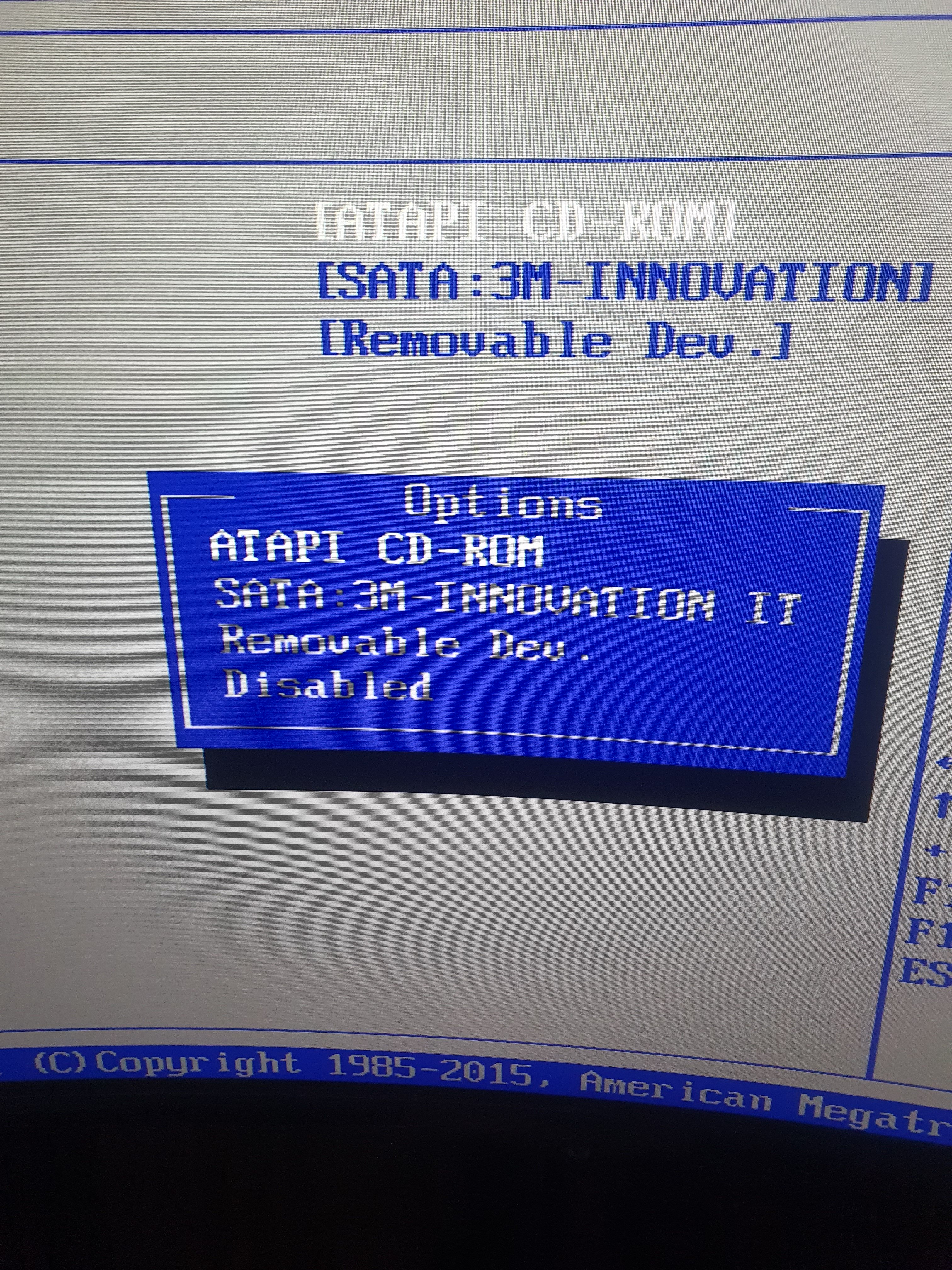 Mit der Scheibe meinte ich eine CD oder DVD, von der auch gebootet werden könnte. Ist dann im ATAPI CD Rom Laufwerk keine CD oder DVD eingelegt, dann bootet dein Rechner automatisch von der zweiten Position deiner Bootreihenfolge.