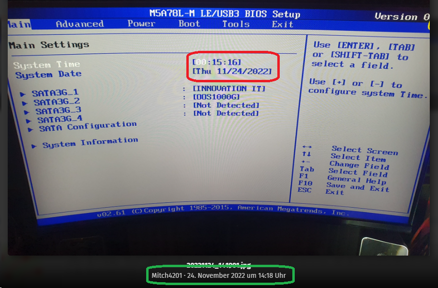 Ich denke mal, du hast dieses Foto um 14:18 erstellt? Dein Bios zeigt aber 00:15.