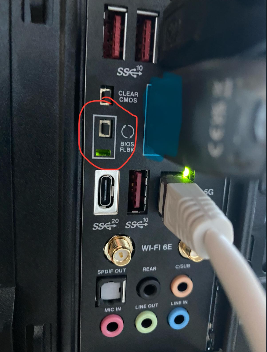 8. OHNE den PC zu starten NUR den Flashback Schalter drücken, 2 bis 3 Sekunden