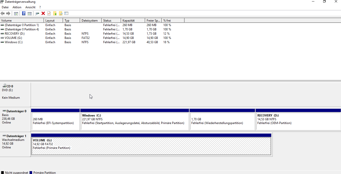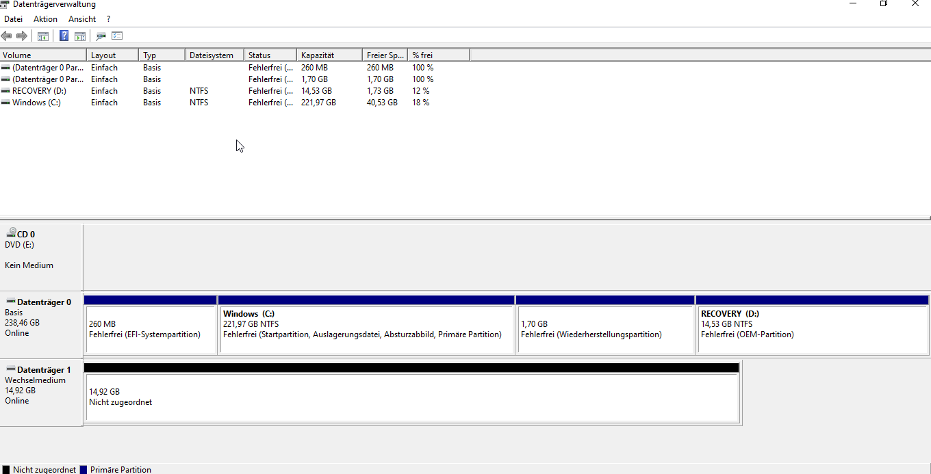 Nochmal: Öffne die Datenträgerverwaltung von Windows!