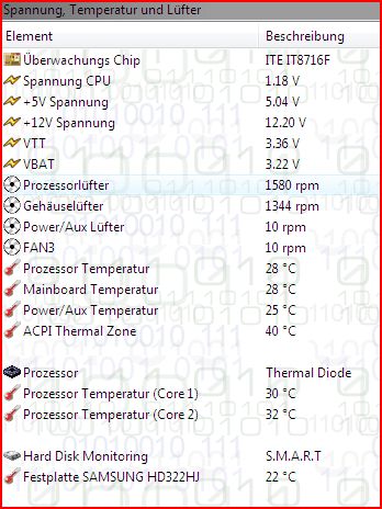 Und das alles obwohl die Temps sowohl von der CPU als auch vom Board nie über 40 Grad gehen (laut Bios)