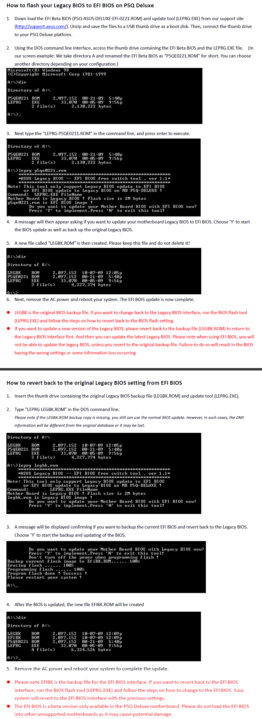 Zuerst wollte ich mal die Beta vom EFI Bios für das P5Q Deluxe ausprobieren, hat auch soweit alles funktioniert, nur der PC hat sich dann nach dem flashen immer wieder neugestartet. Gut dann hab ich die Bios-Reset Taste gedrückt und wollte wieder das "normale" Bios flashen, das geht aber nun nicht mehr. Mit normale meine ich die Version 1406, jetzt ist durch das reseten das Ur-Bios drauf, 0803 glaube ich.