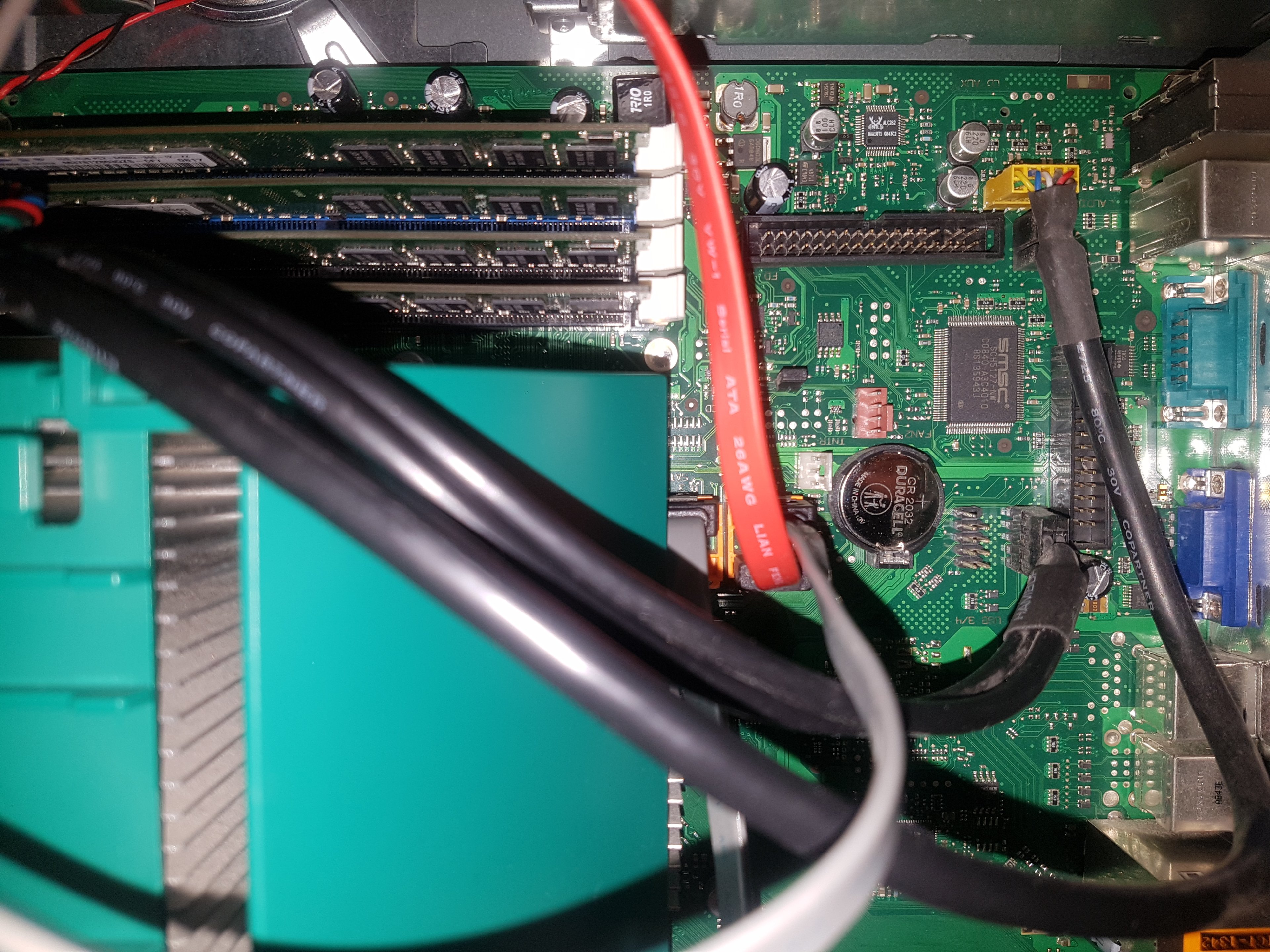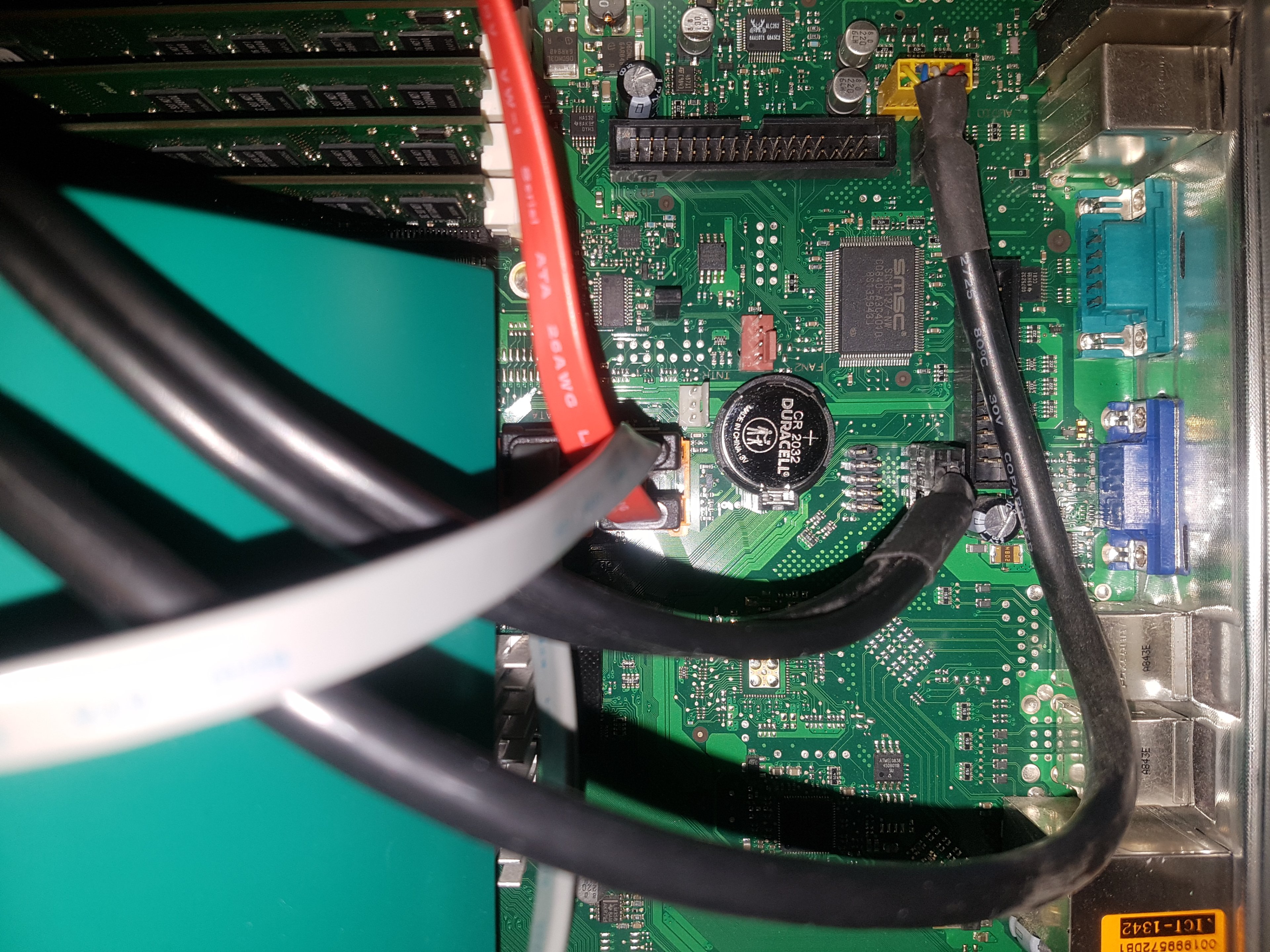 Das Problem bei diesem PC ist, wenn ich nur einen Riegel einstecke, fährt das System nicht hoch. Die Lüfter drehen hoch, sobald ich den Stecker in die Steckdose stecke, dann bläst er munter vor sich hin und das Bild bleibt dunkel, nicht mal die Tastatur LEDs blinken. Stecke ich einen Riegel dazu, läuft er, aber dann bleibt das BIOS nicht gespeichert. Weiß nicht, hab glaube schon gefühlte 100 mal den Rechner hoch und runtergefahren, RAM entfernt, versetzt, RAM dazugesteckt, angeschlossen.., bis die Fingerspitzen schmerzen. Jetzt hab ich endlich mal eine Kombination herausgefunden, wo er startet, alle vier RAMs drin sind und alles im BIOS gespeichert bleibt, aber mit dem oben erwähnten, neuen 'Freeze' Problem.